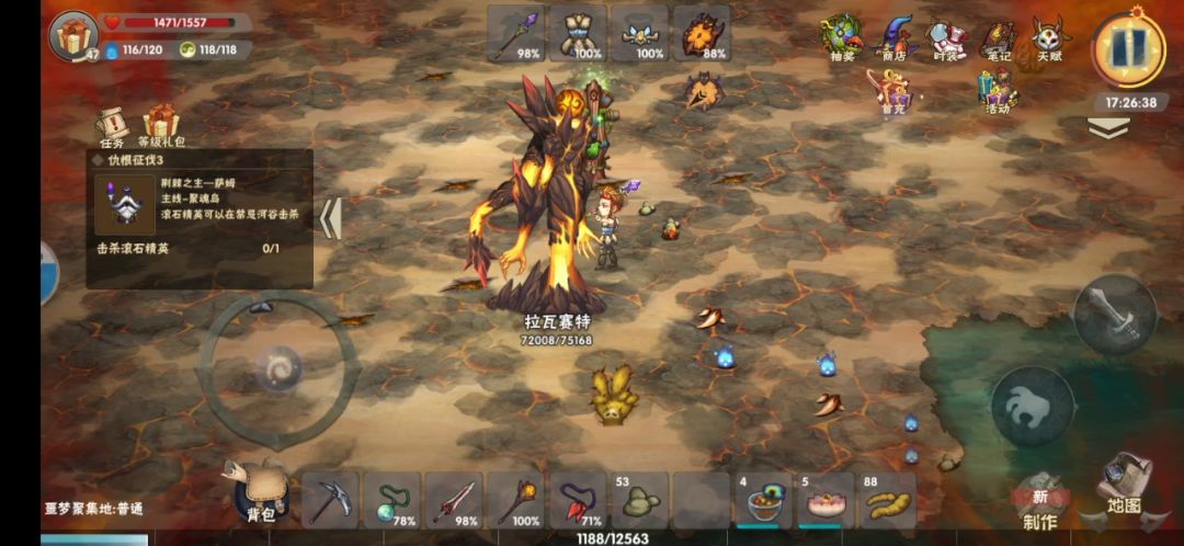 要注意的有三点:第一点就是远程攻击,大概掉1500血左右就会释放,所以每次打掉接近这个血量就要有意识的螺旋走位,不能直着躲第二就是小怪,把boss拉出屏幕卡视野打就行了第三就是在boss附近召地火,威胁不大,可以原地释放,不需要目标。但是抬手和普攻一样,我就是这么被坑死的,所以躲普攻最好还是让他走过来抬手A你再躲PS:开录屏有点卡,就没录完,总体思路放出来的片段就够了,我自己打了三个游戏日才