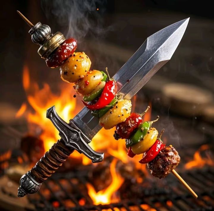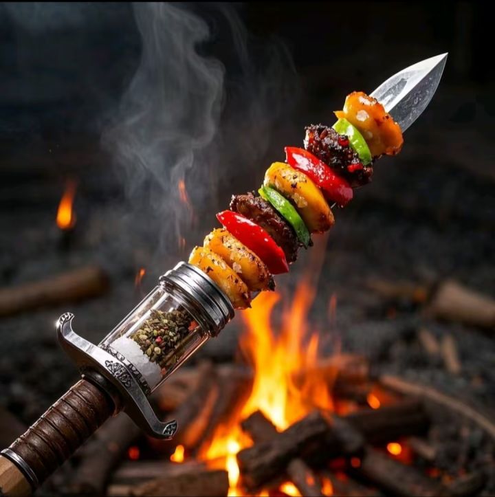 载具名字:炙热烧烤载具主题:烧烤、调料、美食设计灵感:晚上饿了想吃烧烤,于是想到剑形载具也可以用烧烤的形式来表现。灵机一动就整了这么个想法出来,感觉这是一个非常有想法的创意。外观描述:剑柄由分层的调味瓶构成,每一层都存着不同的调料,比如盐、鸡精味精、辣椒孜然等等。剑身是一根粗壮的铁制烧烤签,签上串满了各式各样的烧烤。烤肉烤蔬菜一应俱全,加上冒着辣椒与孜然形成的炙热气息,看得人直流口水。 #