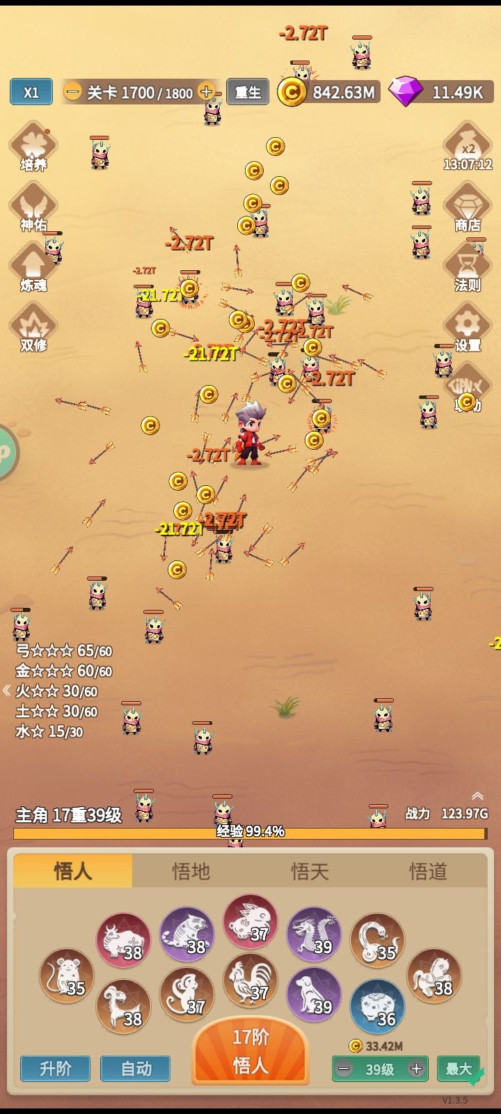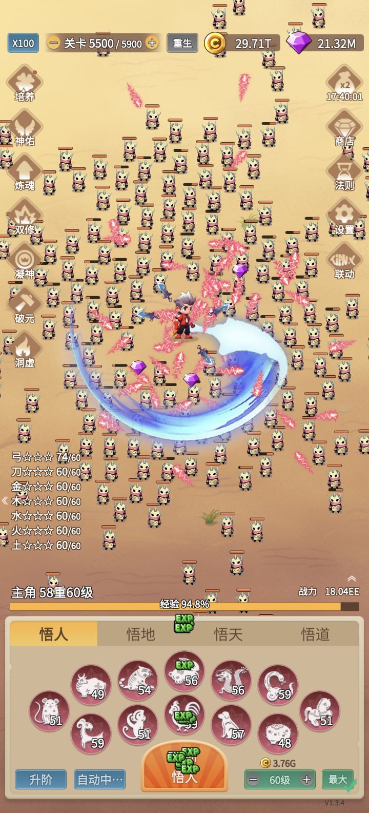 6,主打的就是以战养战,增加伤害加成,用有限的金币,换取实用等级装备的属性,打穿boos,25级开凝神大量伤害加成重生更快。