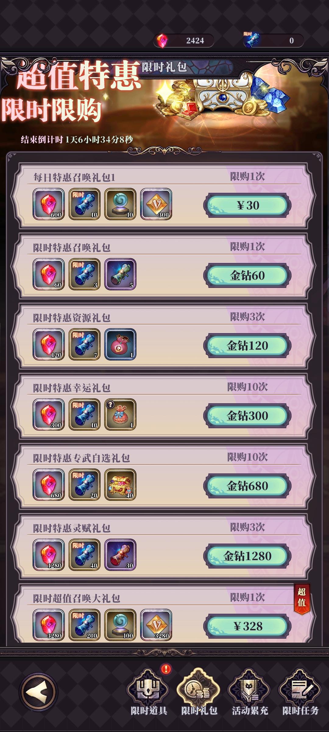 1. 氪金:氪金性价比t0-t4,基于双倍充值购买金钻礼包,氪金时间选择在圣女馈赠和限时活动(有累充奖励)的叠加时间段,比如开服10-11天。回归卡:白嫖、囤囤鼠的心头爱永恒卡、贵族权限、大小月卡:t0入游氪金首选sp限时活动:t0白嫖难获得,不朽sp约1.4w金钻(11张sp,450~500抽),后续直氪不朽到钻3约3k,不朽到钻5约6k烟花活动:t0.5提战必买,优先选择120元素精华