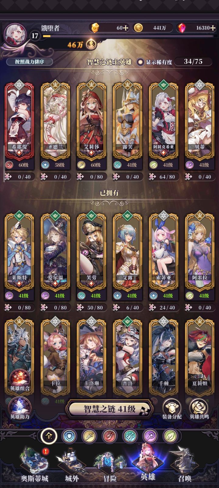 攻略稍微有点长,主要是游戏比较简单没必要分几次发了,大家仔细看多少会有一些帮助的。一些知识点和问题大家翻评论区吧,不频繁修改文章了。 目 录一、角色养成相关(最重要的是魂石和法则,尤其法则)♦核心角色:瓦沙克(神法,全力培养),莱雅,阿蜜莉雅(神盾),希尔达(天平),格雷(魔画),亚尔薇特(女主)。1.等级●经验和升格石一直很缺(前期缺经验,后期缺升格石)。♥等级跟着冒险荣誉里的任务升
