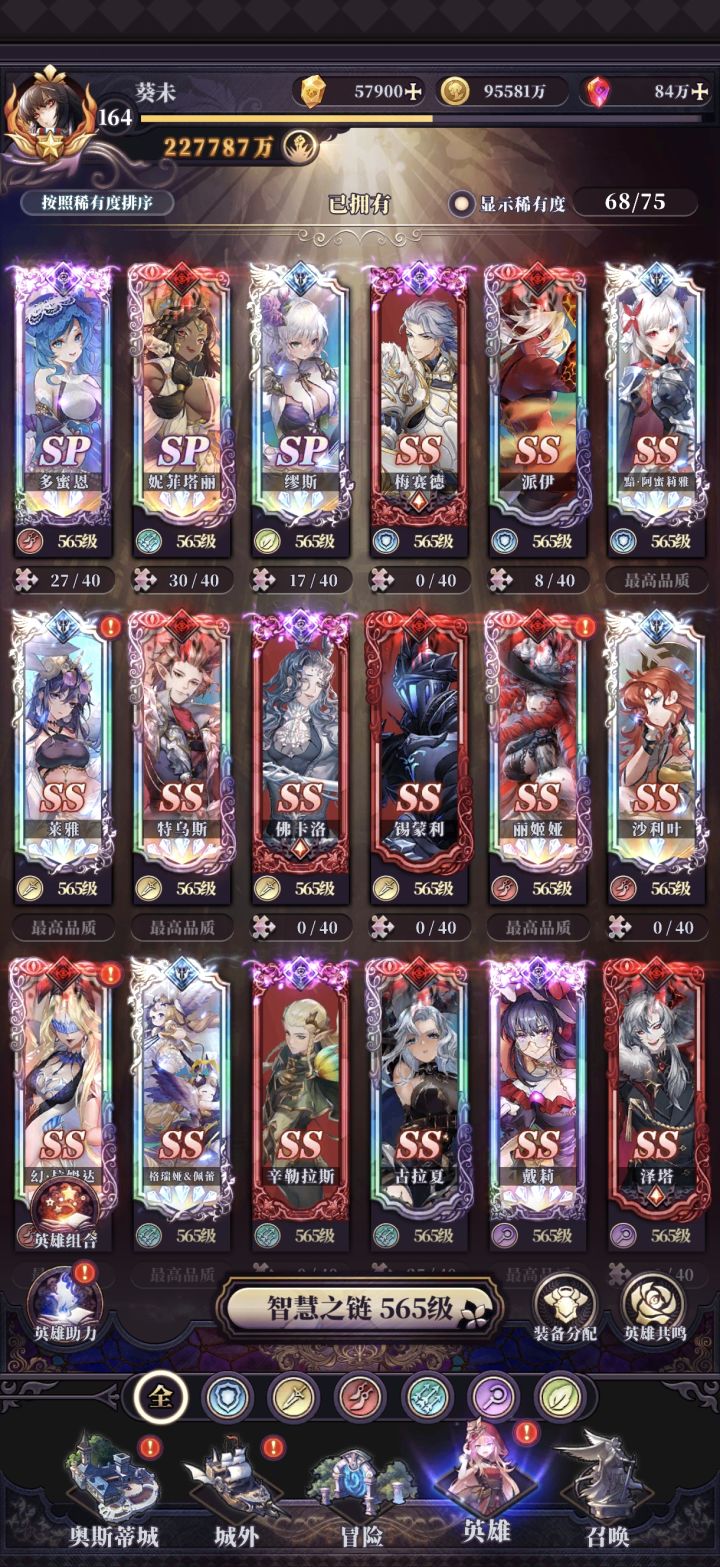 攻略稍微有点长,主要是游戏比较简单没必要分几次发了,大家仔细看多少会有一些帮助的。一些知识点和问题大家翻评论区吧,不频繁修改文章了。 目 录一、角色养成相关(最重要的是魂石和法则,尤其法则)♦核心角色:瓦沙克(神法,全力培养),莱雅,阿蜜莉雅(神盾),希尔达(天平),格雷(魔画),亚尔薇特(女主)。1.等级●经验和升格石一直很缺(前期缺经验,后期缺升格石)。♥等级跟着冒险荣誉里的任务升