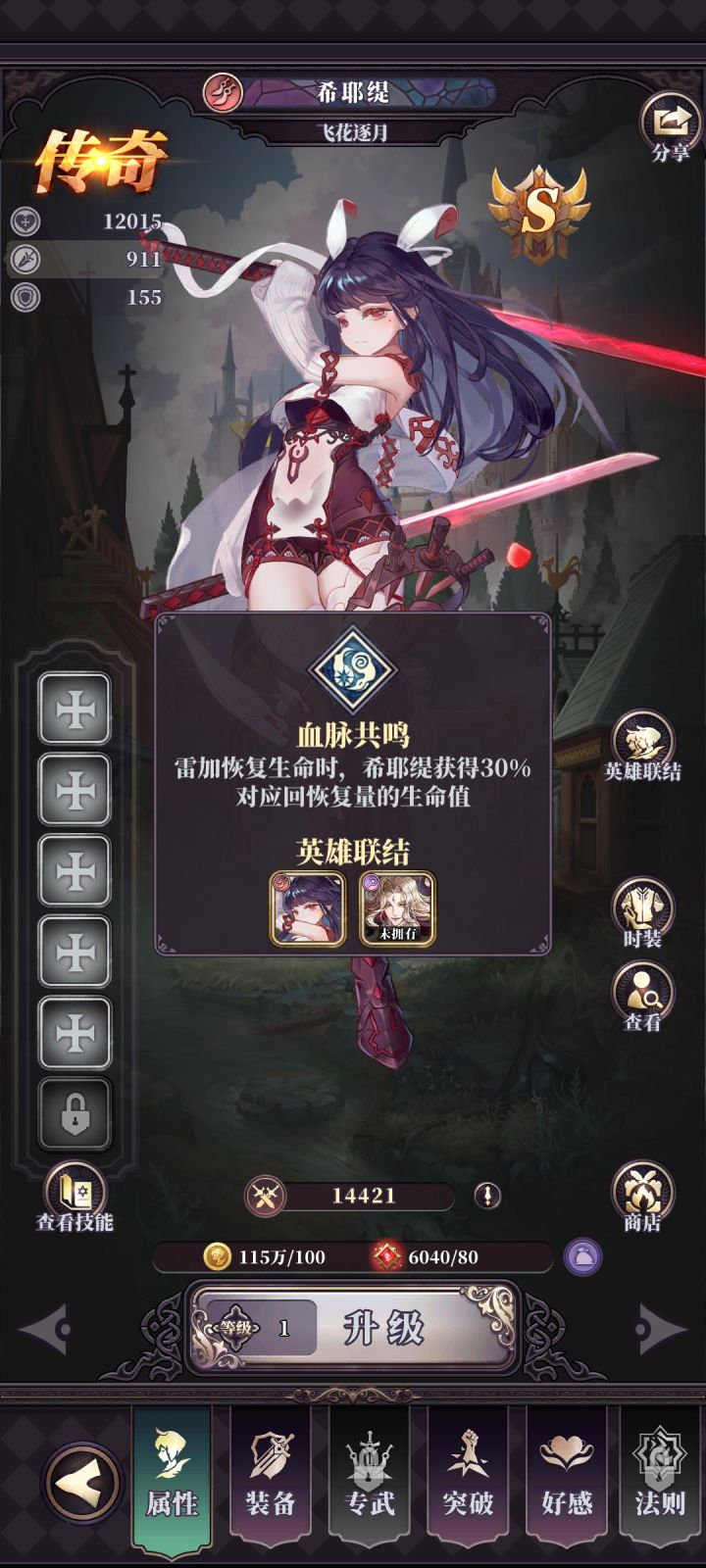 1.不氪的,抽到谁就养谁。谁进阶快就养谁。或者歪根据联结的加成去配队。比如开局希耶提(兔子)和雷加(吸血鬼)开荒。(图2和图3)因为兔子容易获取,开荒简单。搭配联结加成,能更好发挥作用。又或者有其他喜好就自己去搭配成队伍。除了魔,泰坦,蔷薇三个稀有的,其他s都是差不多的。2.神魔莱雅是最先可以获得的,无脑堆。许愿池首发必中莱雅,登录二天送莱雅,再等以后的活动,莱雅开荒第一人。而后再根据联结