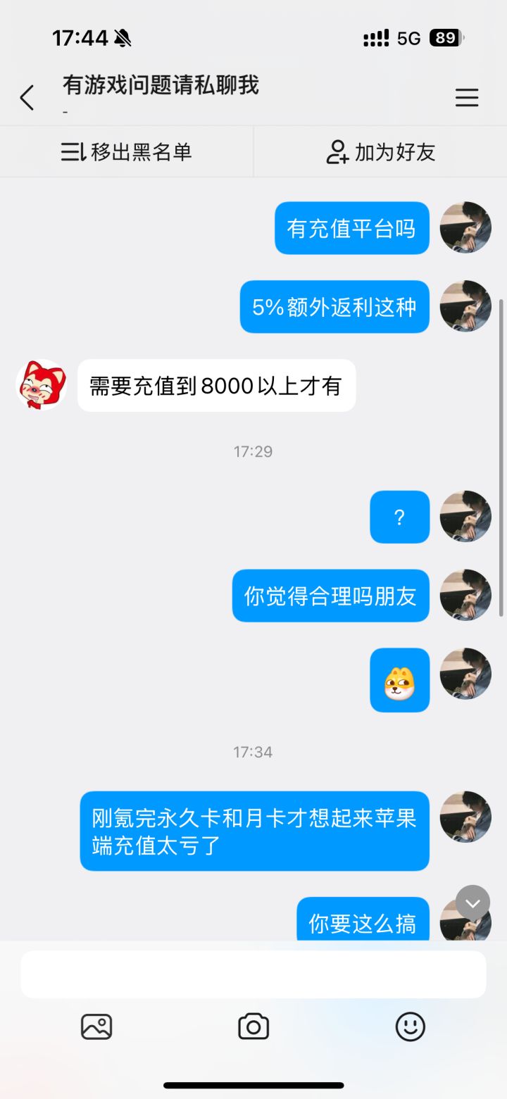 千万别氪金呀,这家公司眼里只有零氪和氪佬两种人,到八千才给你充值平台走优惠,问他为啥不全部放开还要质问你“说话注意点”哈哈客户和工作室太般配了。