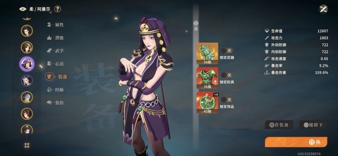 打了一晚上,手机操作太难了哈哈。 队伍: 1.叶雨时 破云弓 古国沙铠 驻颜画像 经脉:2212 心法:真意 2.霓裳 破云弓 伏魔袈裟 驻颜画像 经脉:2212,第六个可以不开 心法:素衣,脸好的可以稷下书 3.白衣 春晖剑 西域僧袍(加持续伤害) 踏雪无痕(易容还是很重要的) 经脉:1111 心法:无相 4.阿曼莎 二号机 机师 机关 经脉:1111 心法:峨眉拓本/素衣 5.池鹭 变天 兔尤
