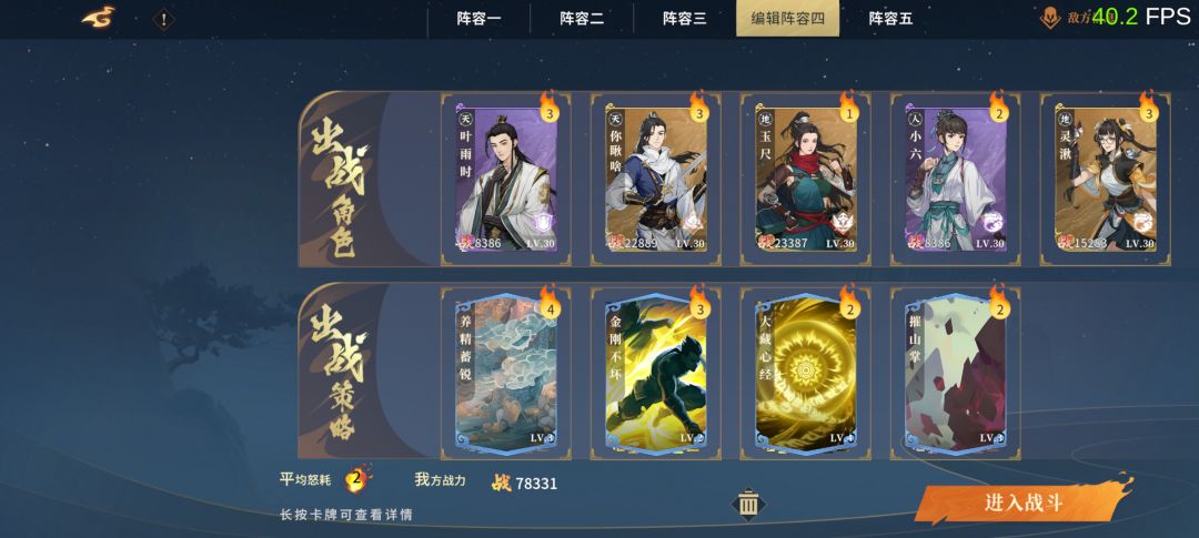 本攻略打法配置不属于中配范畴之内,不要为了追进度而去硬拉经脉潜能,得不偿失。 配置需求:凌雪满潜满脉,池鹭零潜满脉,霓裳满潜四脉,老叶零潜四脉,白衣零潜四脉。 丹药需求:斋饭,玄清丹(治疗次数加一),赤阳丹(攻击力+20%)或神通聚意丹(攻击力+30%) 装备需求:锻造俩四秒无敌的驻颜画像 站位以及策卡如下 凌雪:经脉1121,不点迟缓引爆,心法刺杀(飞鸿更好不过我还没出) 霓裳:经脉222,心法
