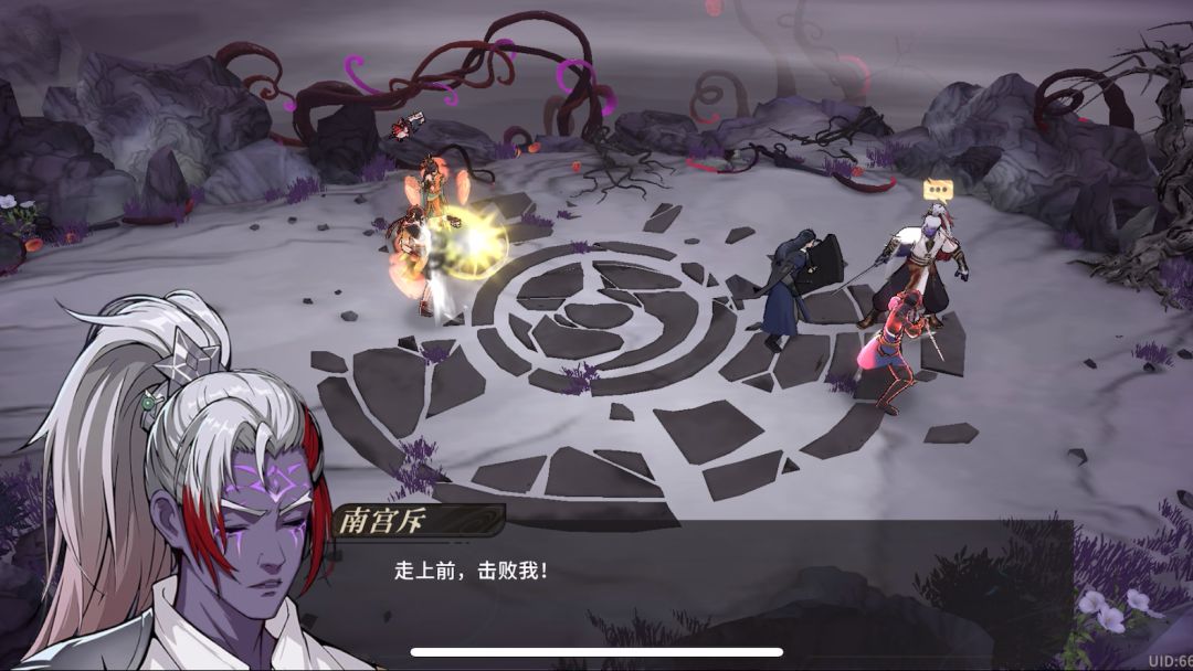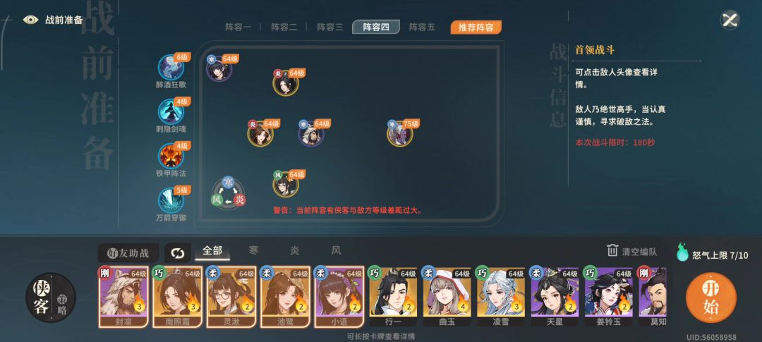 本来想65级质变了去打的,但是刚好缺60魂玉要用,就硬着头皮打了。 要点是: 1.推荐用 池露放在后位,开场她可以靠技能位移把剑标记拉到任意位置。 2.一个大前排抗伤,推荐狼王,因为狼可以单抗,然后把封凛拉下去换备用队友上场 . 3.推荐铁甲卡,全体御伤可以让脆皮抗住修罗剑的范围伤害。 4.二阶段直接莽过去,不用接剑 5.二阶段,BOSS喊出“真意凝神”的时候一定要立马把前排拉到剑那里,盾掉了他会