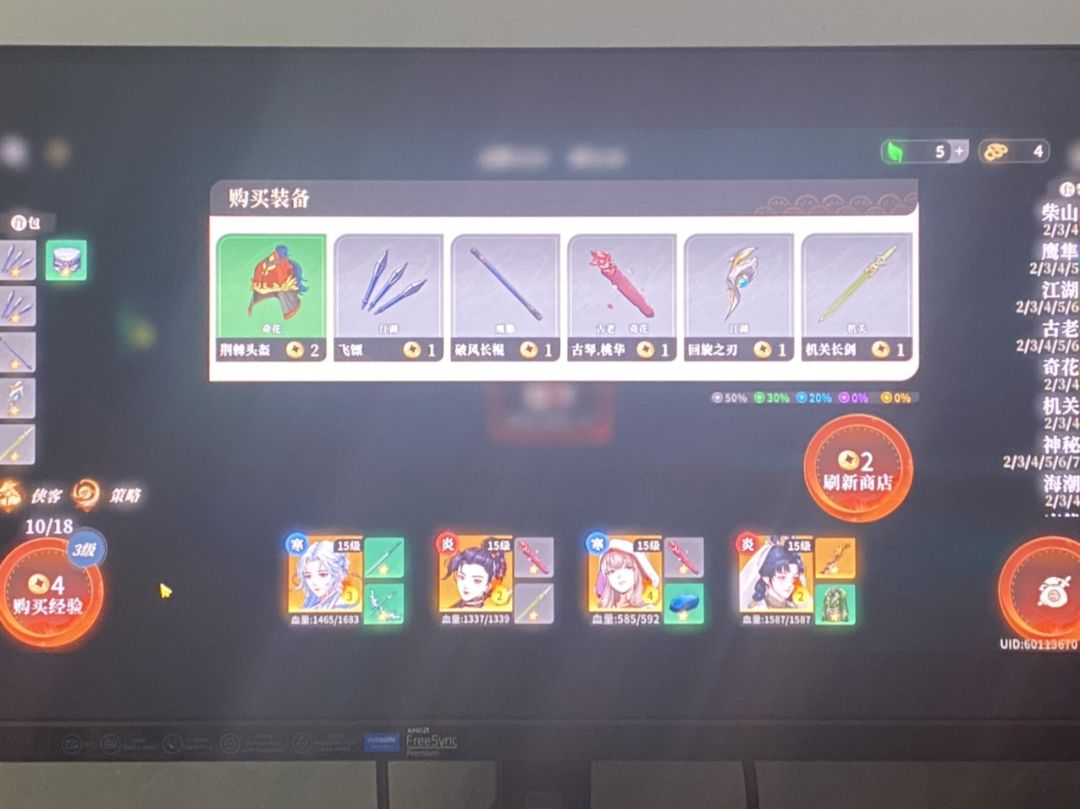 一、新手指南 二、过关流程 这套可以35级通关难度4 阵容:霓裳、曲玉、小铃铛、池鹭 不越级小铃铛换成凌雪这种aoe清怪快的 前期不用理财,不要升级,开局所有白色的装备全买,直到合成3星 绿色装备买下面几个,长弓必买。因为装备3星之后就不会刷新了,所以找装备非常简单 天赋优先选无名神剑还有合成大师 越级没无名神剑直接重开#对决剑之川 越级接下来慢慢升“风卷残云”升满,然后升“浴火
