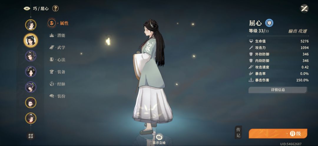 第一,不要盲目追求屈心,凌雪,这个游戏级别是最重要的,体力买满,擂台商店,抽卡商店,通天塔,吃包子,自己烹饪,10级8点,20级10点,物品在杂货店都能买,那些副本推荐28级,33级,提前打过没级别你也带不上。 第二,前排优先霓裳,五星最优,没有你突破4-5经脉,都选血,也能放出大,越级必备,主输出5脉,霓裳没5星也优先5脉,其他3,老叶看着优秀,拉起来成本太高。 第三,远程输出小铃铛比凌雪屈