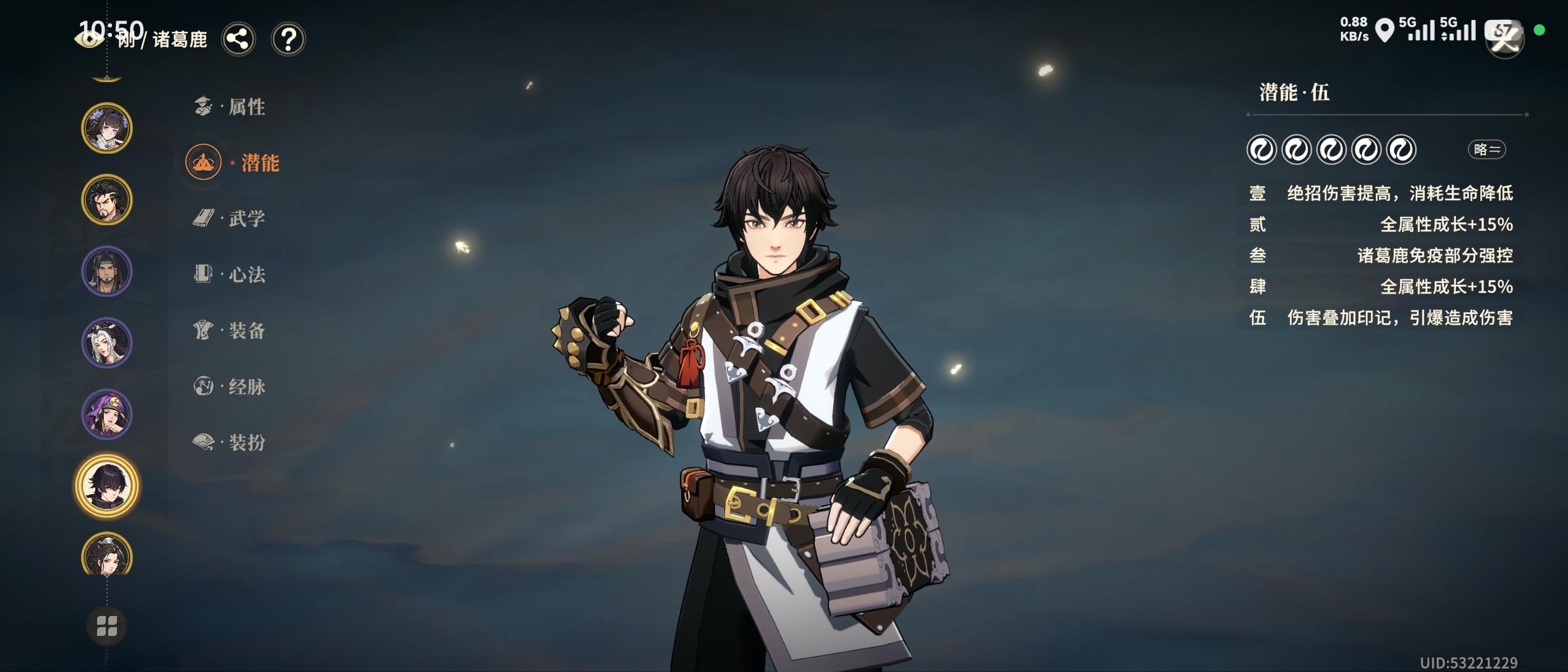 (已修改)事先申明,楼主认为吴渊这个角色机制还是不错的,能够丰富一些角色玩法,就是数值有点低,导致了他的特点无法完全发挥。 从满潜效果看,吴渊能够提供15绝招增伤、15敌方受绝招伤害提高、45%暴击伤害以及15暴击率,但作为一个绝招增益型专辅,绝招增伤以及敌方受绝招伤害增高对最终伤害提升可能只有25%甚至更低,内劲比不过霓裳40%敌方增伤,外劲比不过老燕30%敌方增伤,更何况这俩都是t比他能扛
