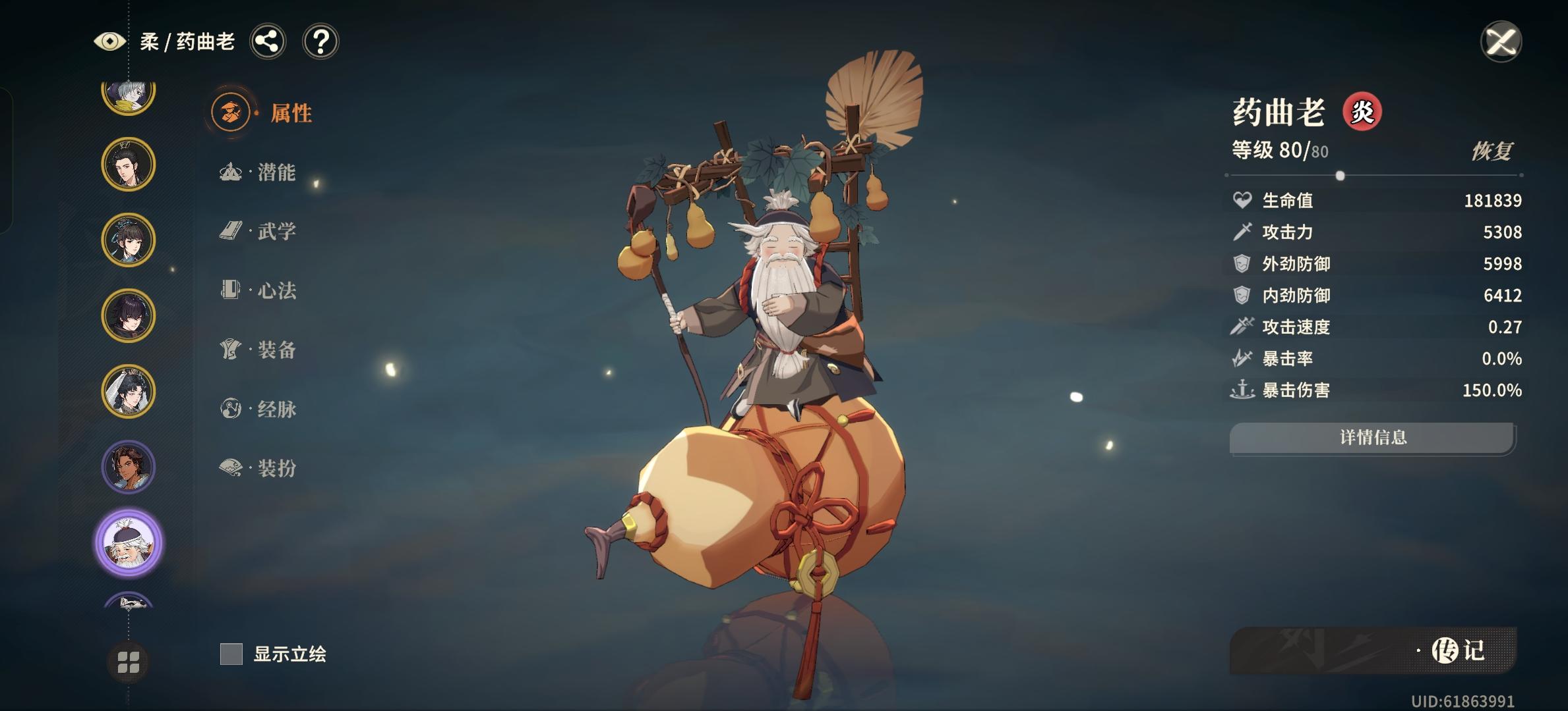 (已修改)事先申明,楼主认为吴渊这个角色机制还是不错的,能够丰富一些角色玩法,就是数值有点低,导致了他的特点无法完全发挥。 从满潜效果看,吴渊能够提供15绝招增伤、15敌方受绝招伤害提高、45%暴击伤害以及15暴击率,但作为一个绝招增益型专辅,绝招增伤以及敌方受绝招伤害增高对最终伤害提升可能只有25%甚至更低,内劲比不过霓裳40%敌方增伤,外劲比不过老燕30%敌方增伤,更何况这俩都是t比他能扛
