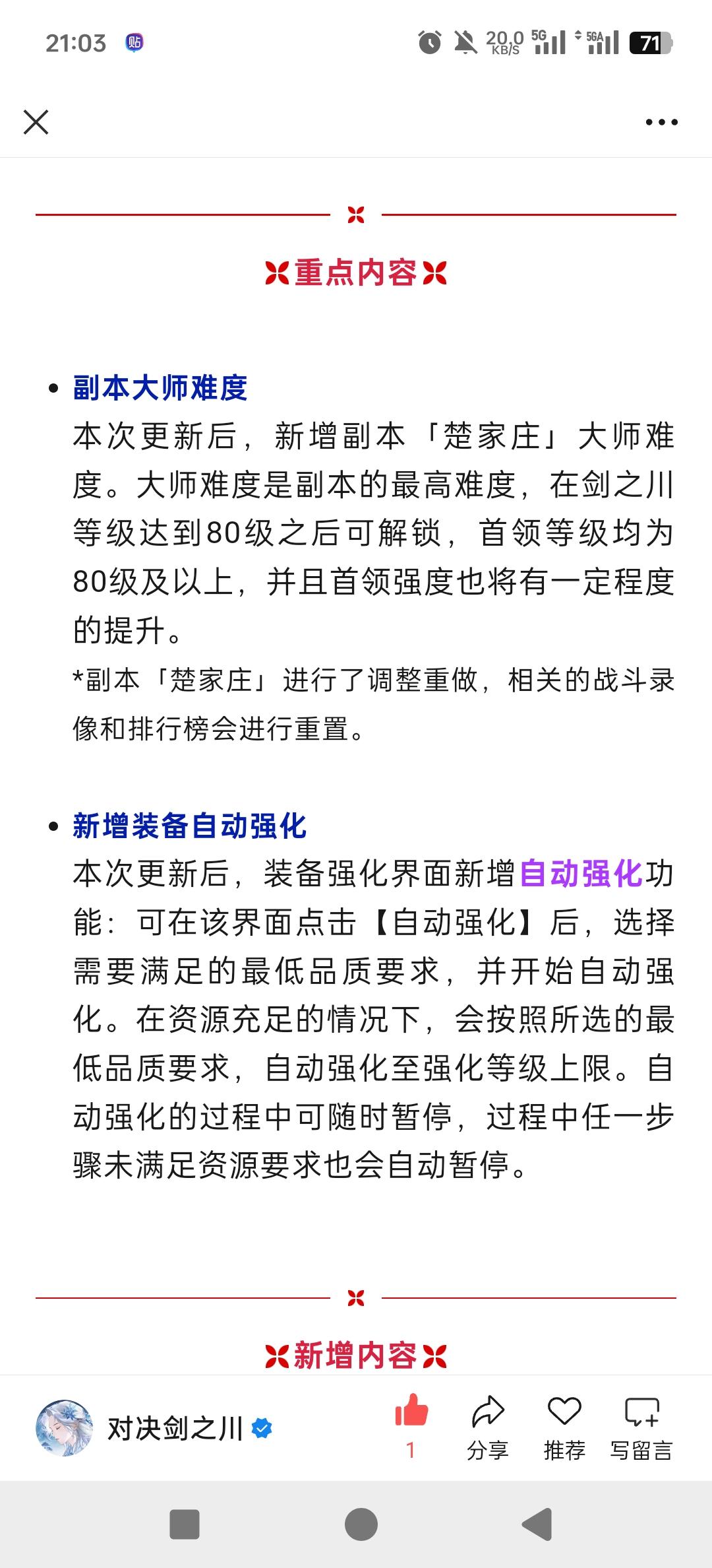 1月22日更新预告:楚家庄大师难度上线,新增装备自动强化功能!