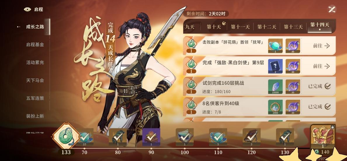 成长之路还有两天,感觉过不了了。黑白剑使打起来很烦,才打完五级。醉花荫的boos,满潜的南照霜磕药一个都打不动。。。。为了追等级,每天都买体力,松果也全部用完了。就是这么乏力