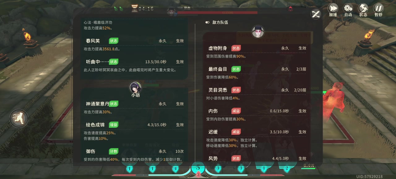 老三: 小怪打没有护盾的队友会上毒,上毒会大大缩短药人出战的时间。所以选择了曲群体抬盾加清毒,同时boss的第一次蓄力队友有盾无需关注,一定要打断第二次蓄力,会给boss上50减伤。开局小怪及中间小怪靠速切李嫦鸢速秒,然后转诸葛鹿站桩。 药人出战阶段,注意一定要打断瞬移到屏幕中央发紫光的技能,蓝圈看跳的队友,拉开即可。药人周身电击技能记得拉开诸葛鹿。