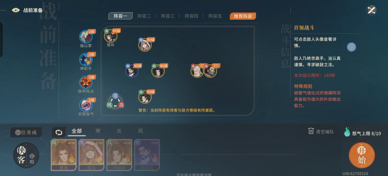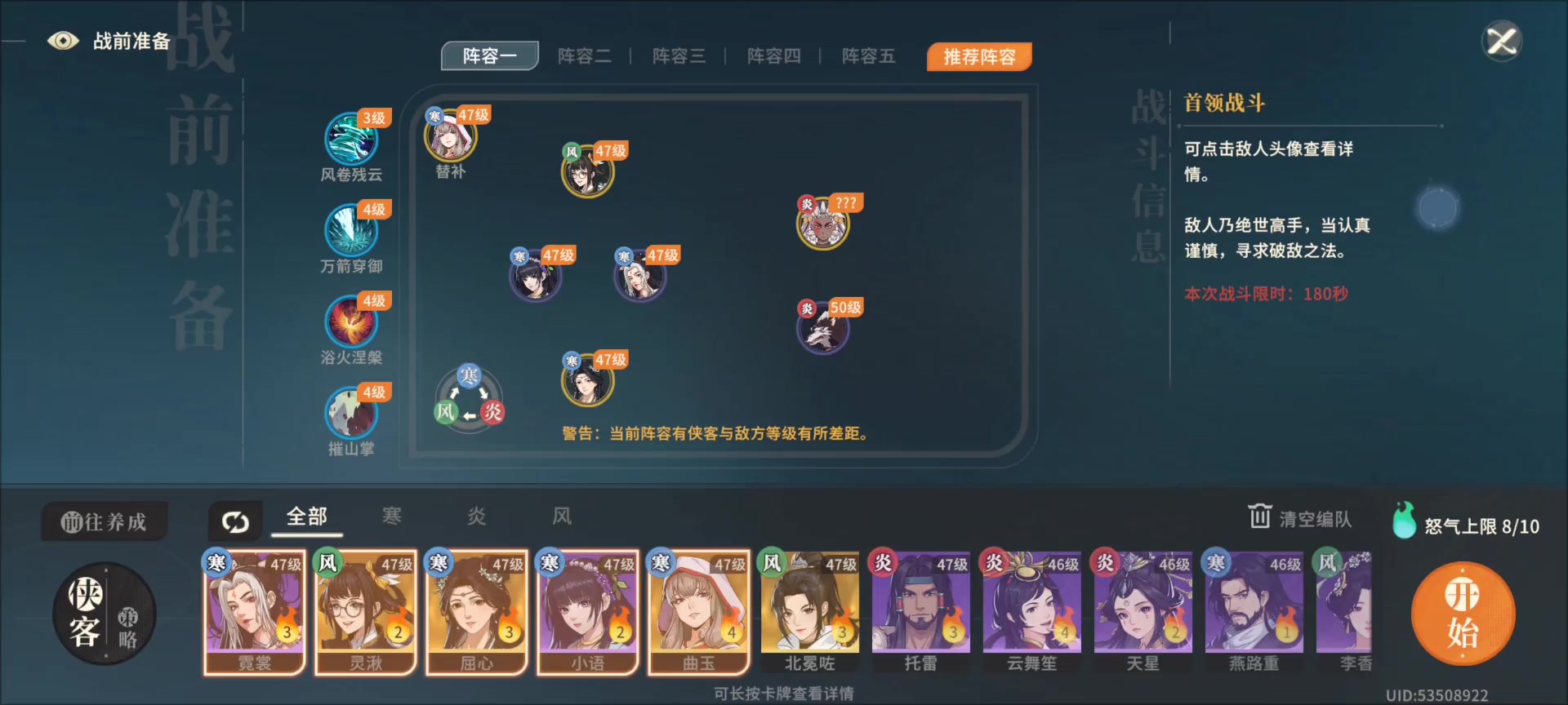 前排就一个三潜霓裳,没任何技巧,只要开头霓裳自动技给到小狼,后面摧山掌再给一次小狼就好了,直接伤害灌死了,就靠涅槃那点无敌足够了
