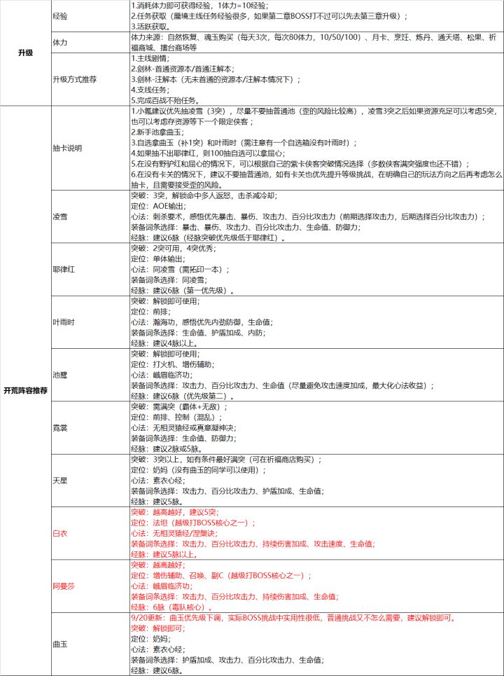 首先本人是新玩家没有参与过内测,但是看了论坛里也没有比较全面的分析,所以我耗时2年半自行分析了一下1、这个表格不是绝对值,只是相对的分析,个人分析可能有计算不准确的地方,仅供参考,如果你有不同的见解,可以探讨2、经脉,潜能,技能,数据太多了,所以我写的比较简洁3、有的数据我没有写上去,比如叶雨时经脉加内防和生命,诸葛是外防和生命,因为所有坦克都是加防,输出都是加30增伤,战士都是加15增伤和