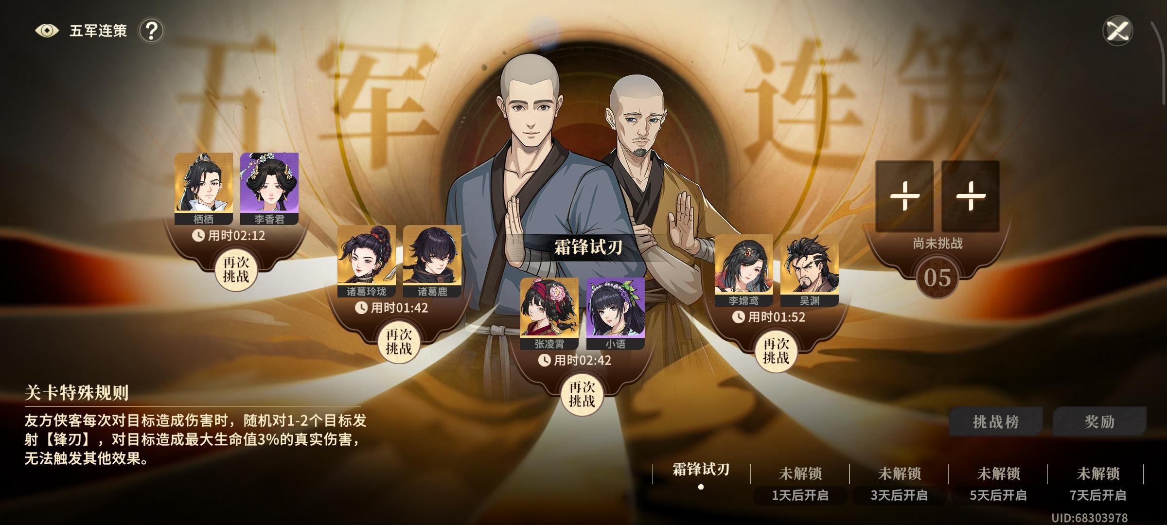 楼主开荒阵容(供参考)开荒等级:76级坦克:满潜叶雨时辅助:满潜曲玉、满潜池鹭、满潜李香君输出:满潜白衣、金蝎子一 梁曲1 灭团点1)开局炎属性角色会被混乱2)每个阶段小怪不打死,跨阶段连线人会直接暴毙3)最后阶段boss全屏大招2 应对策略1)推荐阵容:曲玉、池鹭、白衣、蝎子、李香君2)推荐策略卡:熊3)使用曲玉或者李香君帮助池鹭解混乱4)使用熊策略卡,弥补没有肉盾的