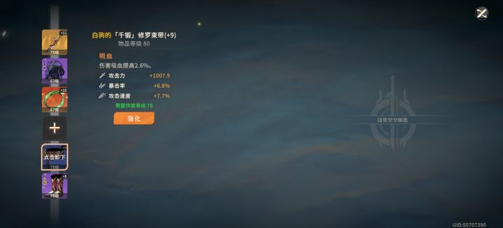 开始以为难度很高,结果很简单,鹿子一路锤下去,全部一次过,比黑煞才出来那会儿简单多了,不过极境还没时间打,按这难度来看,还是很容易的,话说大师本掉的这腰带算是抬了鹿子一手,吸血暴击攻速腰带,这样鹿子完全不需要吸血功法和吸血武器也能莽了,鞋子的提升也是真的大,另外吐槽下吸血功法真辣鸡,木桩亲测比带猴子功法少了30%总伤