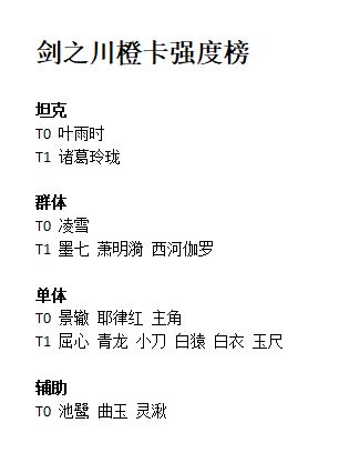 | 剑之川强度榜排名 | 侠客数据对比 |