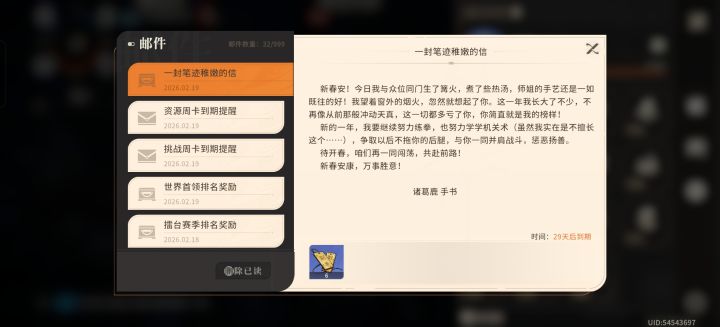 打新春演武的时候,第二把进去没有战斗画面,是第一把的结算画面, 而且结算画面还退不出来,第二场战斗也没有开自动战斗,在里面一直平a,结果打了几十秒失败了还是退不出来, 大退游戏之后重新进发现新春次数只剩一次了,第一局是我自己打的,第二局是卡在结算画面退不出来,也给我扣了,就很烦~