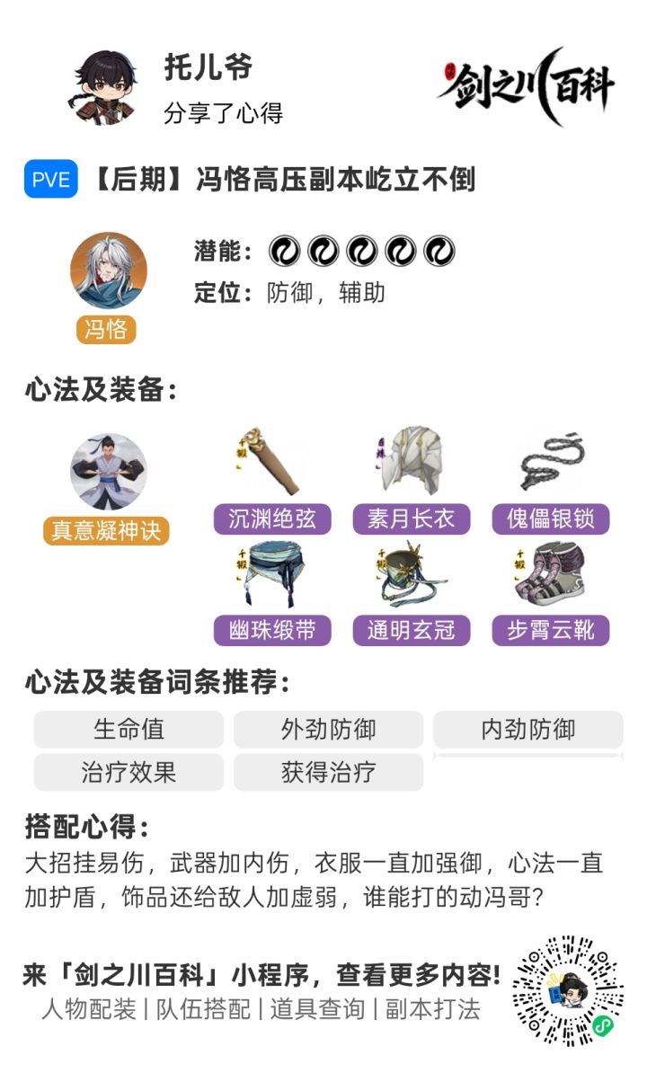 沙匪副本手动打了6次,有了冯恪好打多了,深渊10层凹了好久也过了。核心是【傀儡银锁】给敌人加虚弱,加上金色小六的高额治疗,打沙匪老三的转转转可以站撸了(之前一转就团灭),【素月长衣】一直给加御伤,使得冯恪非常能抗,给鹿也穿了一个同款衣服,因为鹿会消耗自己的血量,所以大部分时间也能给自己加几层御伤,感觉比坚毅衣好用。我的0潜叶雨时可以退居替补位了。小号试过了百毒老怪非常强,刚好抽冯恪