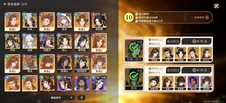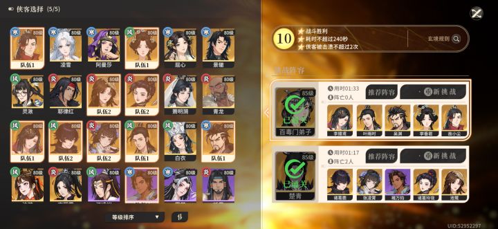 老一,感觉硬打还是打不了,最后是用论坛中溜字决溜死的,人多了还不行,就剩1个或者2个,反复用轻功跳出那个攻击圈,等他流血慢慢死,,,这种打法不需要练度,我只有南照有练度,剩下都是凑数的,基本心法都不带那种,,,,,,策略可以带金刚,铁甲之类的,容错率高点(忘记截图了)老二,这玩意之前头疼,因为锤妹要打老三,老二这边大范围火弹直接团灭,这次解放锤妹,用金燕桃加小6双驱散,全屏攻击时,放锤妹大招,生