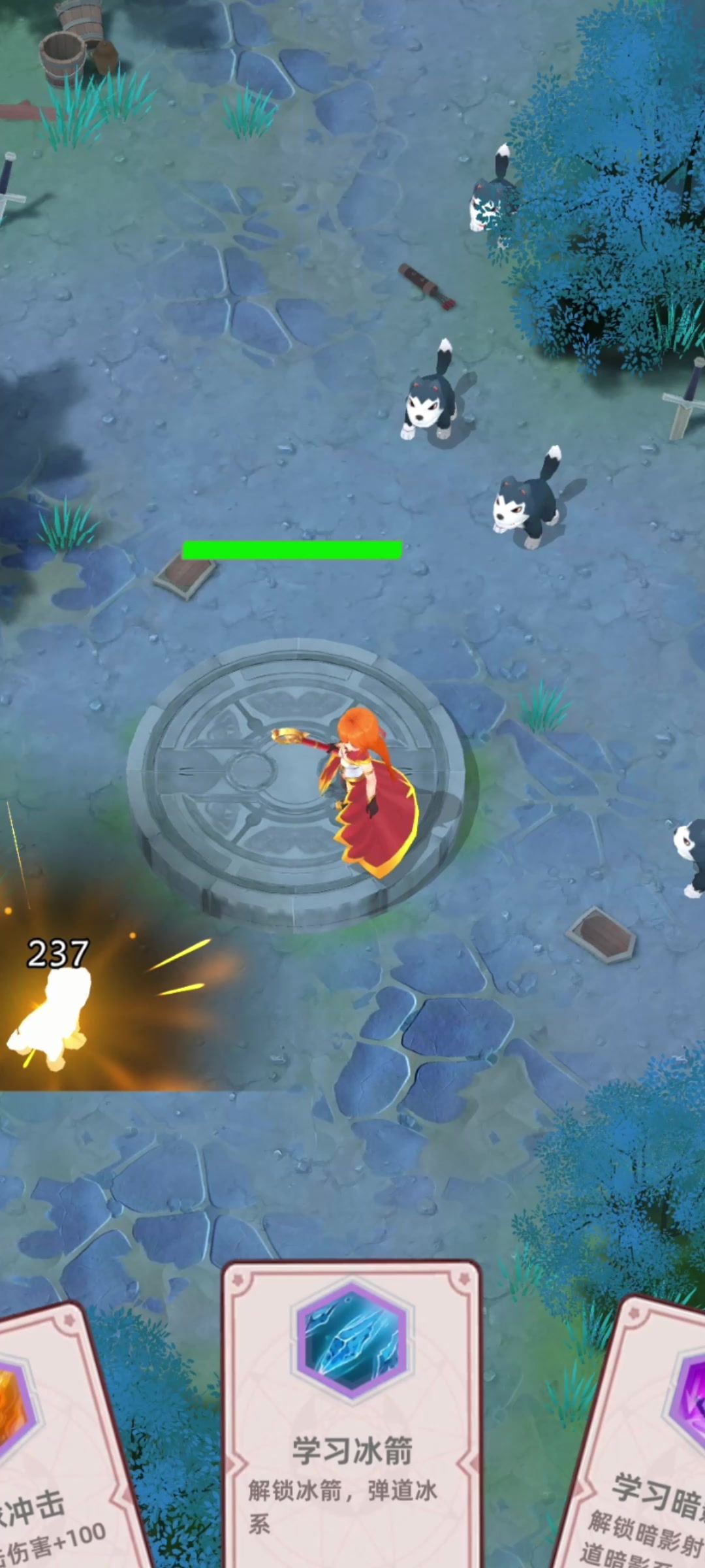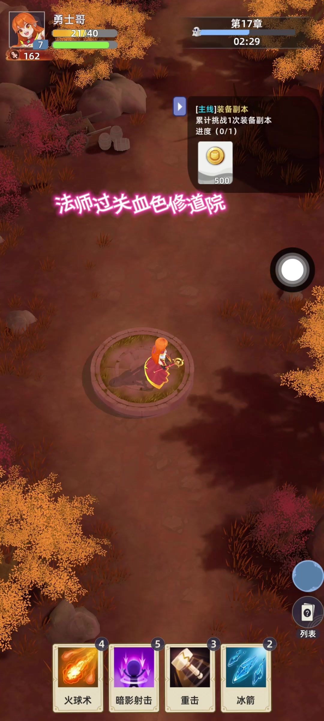 火球术-对首个命中的怪物照成伤害,并可产生爆炸且可附带击退效果。 玩家可以在不断的提升中,解锁炫酷的特效!