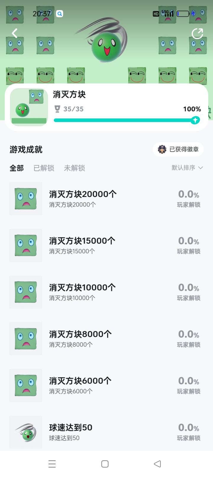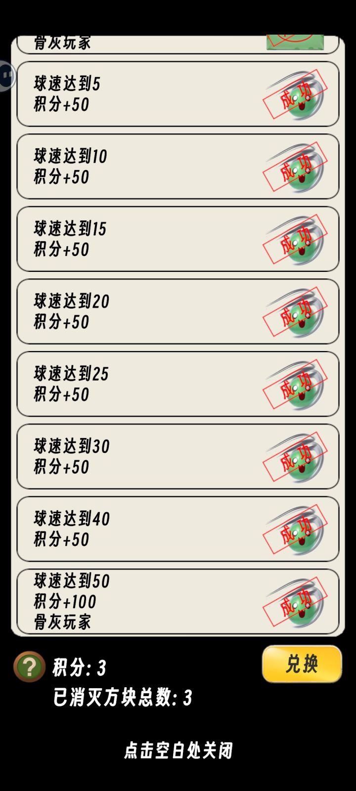这游戏……战线拉得实在太长了,没有存档,删了得重打成就,偏偏最后几个成就还是有完成可能性的,搞得这游戏在我手机里食之无味弃之可惜。游戏玩法就是电子游戏蛮荒期就出现的打砖块,创新点在于各种道具和弹球的抽疯移动逻辑(喜欢我表面上被板子弹起实则空中一个连续变向钻地里的大球吗)看广告还在其次,这游戏不高度集中就钻地里的弹球才是真正的精神折磨,不说了,今天全成就也是有种身体里郁积已久的浊气