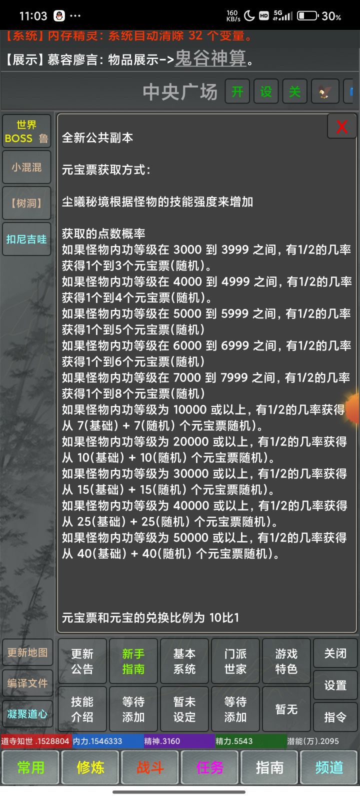 目前游戏内 可通过转世白嫖vip12 全新副本 元宝副本可获取 5000元宝全新任务 做任务就可以获取元宝公共副本 可以获取元宝票 元宝票上限最高为 10w 如果够肝可一天可获取 1w元宝全新宣传活动初步定的奖励即将添加宣传发帖奖励,帖子要求将游戏内容或者特色介绍出来,通过你帖子过来的每个玩家都给发帖者5千元宝!配合推广系统的12000元宝,目前定的就是这些,大佬们要是还有其他的想法可以