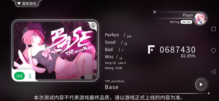 仅个人观点:(注:我曾经有玩过一些音游,会有一定的基础,感觉他跟屁股肉很像)①判定较严,判定线会动,有时也会随着节奏抖动②极其容易断触,特别是滑动音符,一般连续三个时中间那个总是断触,其他普通的音符也会③会有些卡顿,跟其他上市的音游对比,无论是音符下滑肘,还是在游玩时打击音符,都感觉有明显的延迟,不是特别流畅(仅为测试评价,一切皆以正式上线为主)总结:比较适合有一定基础的音游玩家,判定较严,容易断