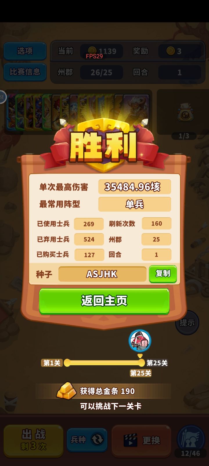 有任何问题可以加QQ群 212949021.本攻略主要用于新手冲25回合打完,8回合通关,请自行探索2.阵营选择:新手建议用群,个人更建议用群,其他阵营,等你熟悉了自行研究3.开局(1到2回合)想冲高分的话,建议是刷一下开局,1到2回合能拿到刷金币的英雄和减少兵营士兵数量的英雄为最佳4.注意点1,前期所有东西都不买,只买有用的武将,注意点2,刷开局方式,打一局(注意不是一个回合)出一个有