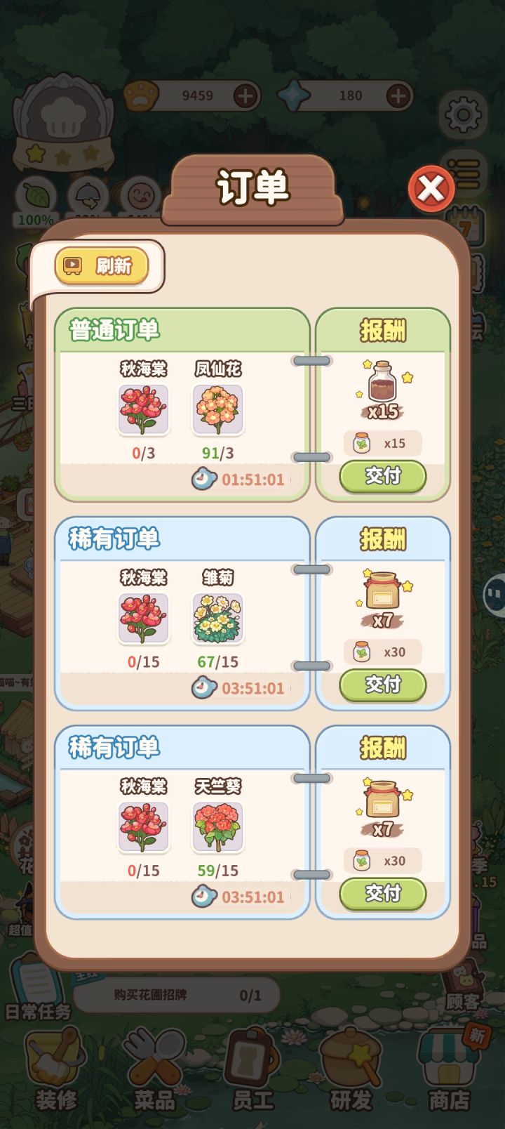 希望官方尽快修复,明明花还没培育出来,花园订单一个劲的出来,根本无法做任务,也得不生根粉和培养基,那我哪来的材料培育新出的花