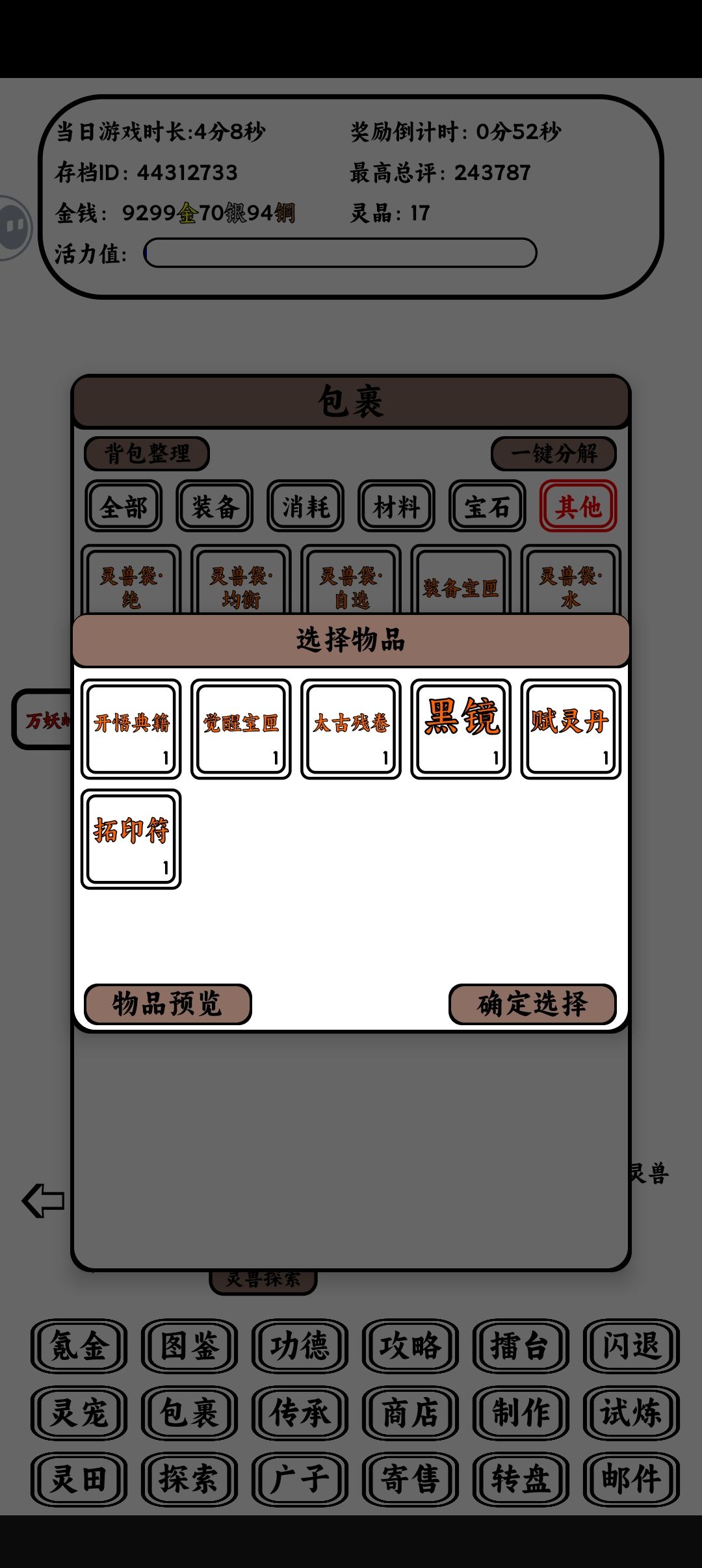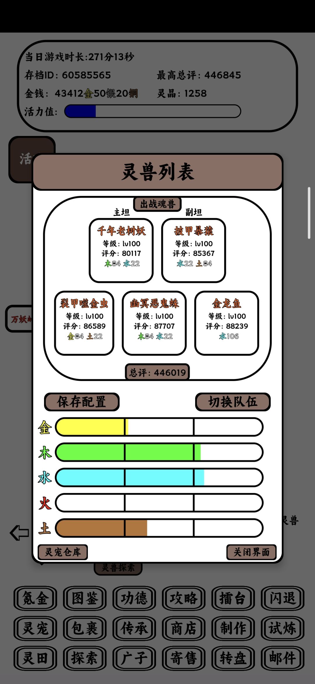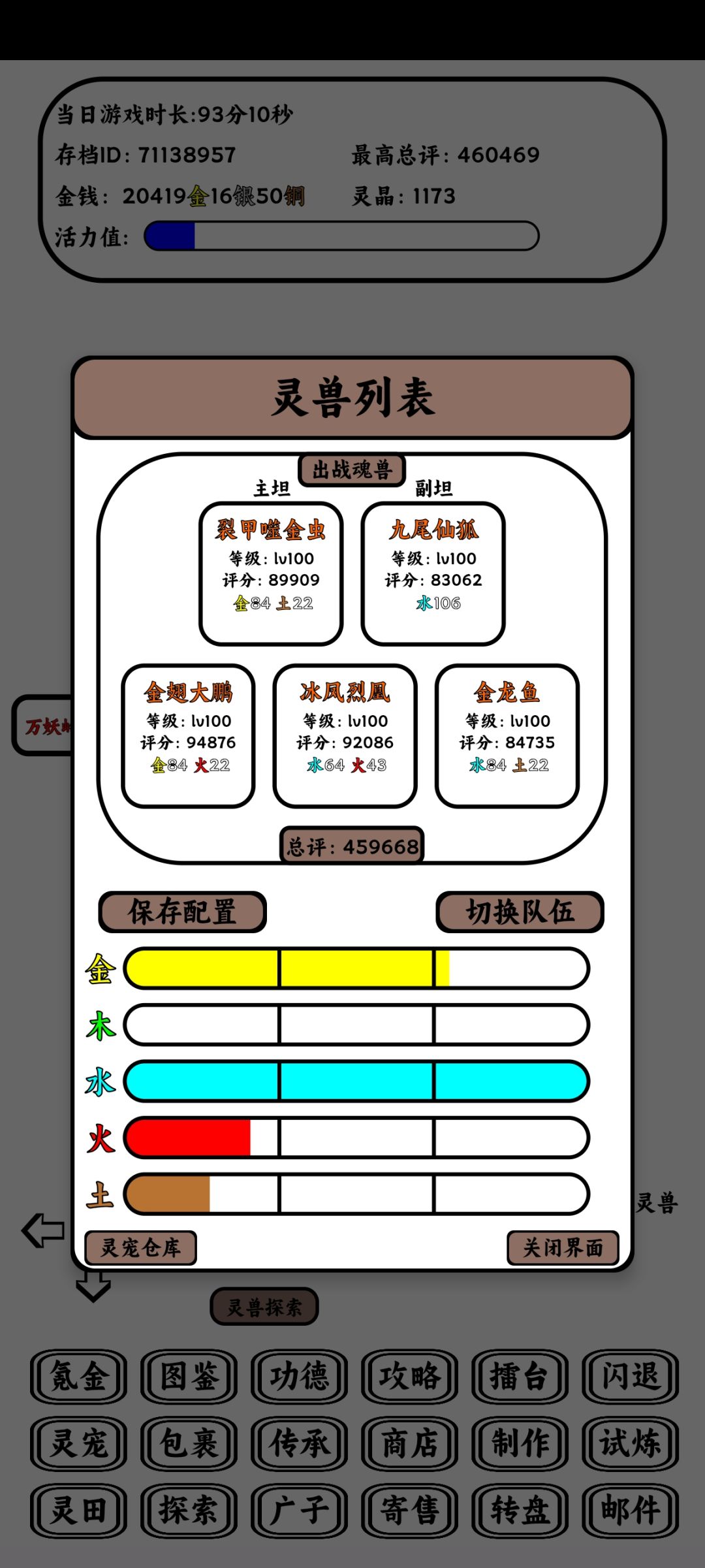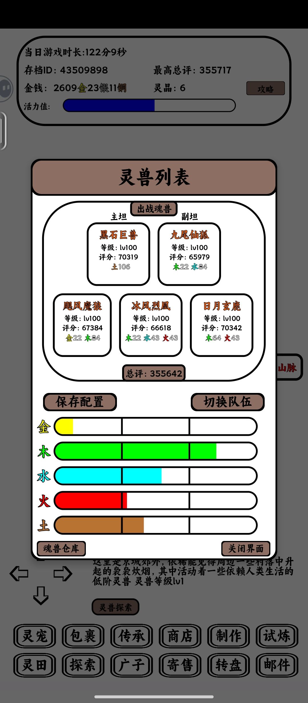 最近感觉萌新变多了[表情_狗头] 有大佬前面做了攻略,萌新可以前面翻翻看 进游戏右上角有攻略可以点开,里面有兑换码礼包,抓宠只要绝世以上的,资质天赋不要紧,后面再换,先把阵容定下来 35级地图抓,黑煤球,灵水狐,赤焰狐,然后30级地图的疾风狼和幽焰火鸟,这就可以组个法狼队了 灵田前期疯狂收菜,到天级就不缺经验丹了,前期金币就买经验丹、觉醒丹,狗蛋水晶也可以换觉醒丹,觉醒5个之后再换别的,每