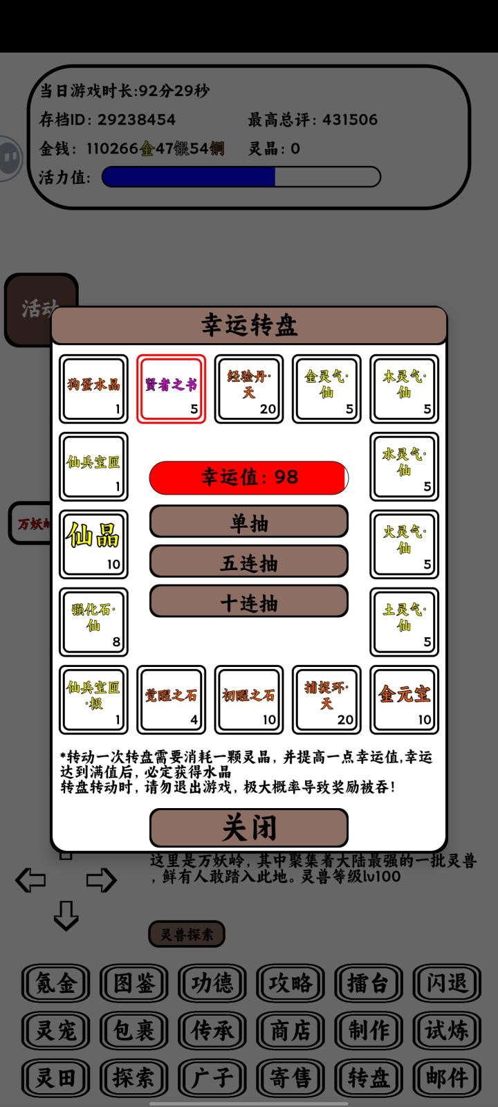 由于手贱,我只能开个新号重新玩,所以才有了这个新手攻略emmmm。首先还是领取兑换礼包兑换码:ljyx520领取兑换码有五个随机宠物袋和一个神兽精魄(用于觉醒)和其他东西,先开袋子,开出来小火苗最好,小火苗升满后就是火龙,觉醒火龙后会得到一个额外群攻技能,时候清图。这里我就按照我新号的情况来写这个攻略了。首先这个新版本出来了五个新宠物,这些宠物以后可能会调整,不过现在按照目前情况,这些宠物