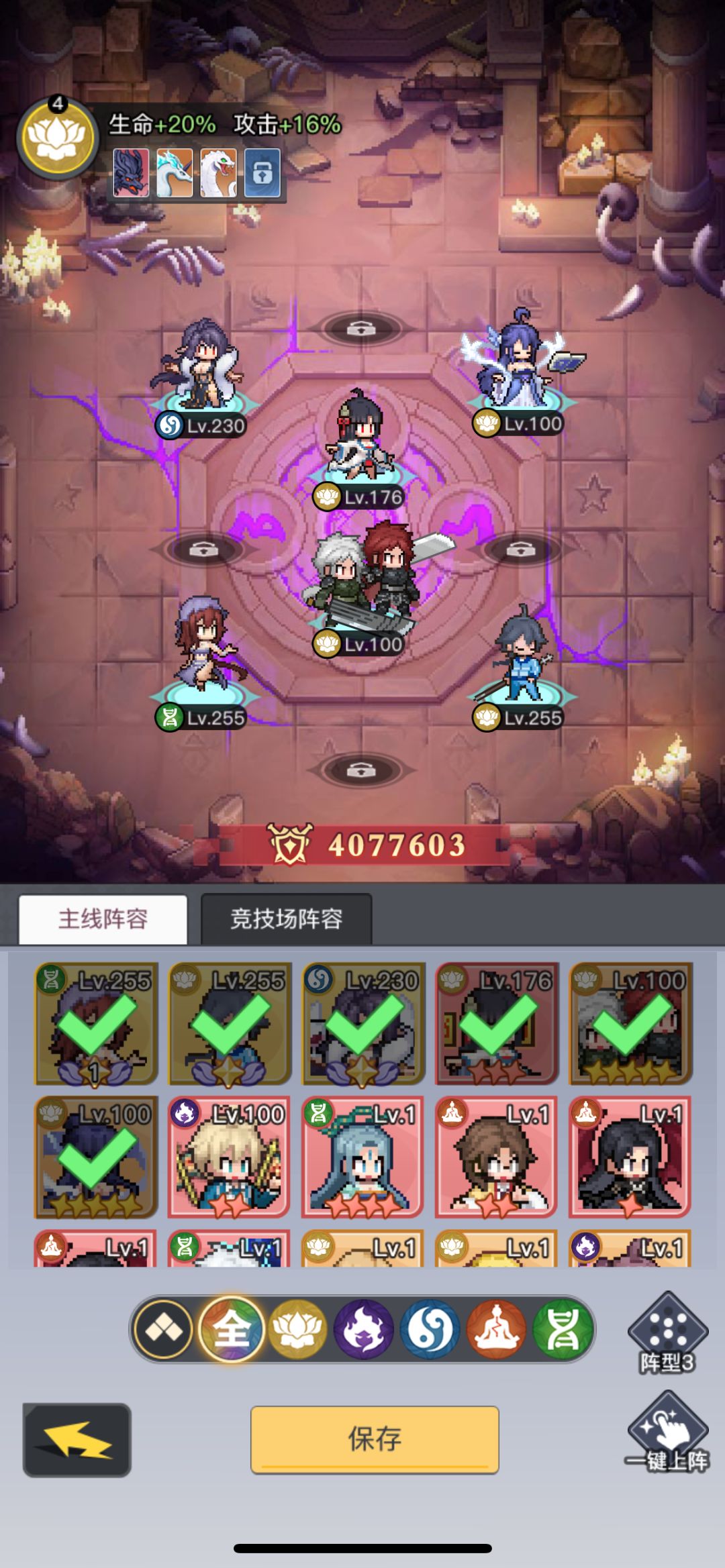 #黑狐小牺 本人平民爬塔(武斗空间)阵容,主C:白跟洛兰,雅雅范围输出+控制,小飞放中排叠buff+复活,依依带奉献,死了加攻击,白月初带红法器九龙,物连还有其他加攻击伤害的符箓,战力4百万,爬塔403层,只适合爬塔,不适合打架!