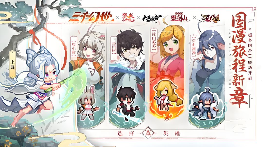 最近沉迷《三千幻世》,作为像素风国漫冒险手游,它联动超多热门国漫,谁能拒绝涂山雅雅和吕树并肩作战啊!整理了一份攻略,助大家少走弯路。 进游戏先跟着主线走,经验和资源给得超多。第一天努力冲到20w战力 ,新手挑战有丰厚奖励。开服送的3000抽别用钻石抽 ,系统送的30抽先囤着,等完成七日任务“累计抽卡100次”后再用,抽到好角色的概率更大 。 开荒角色:前期欢都落兰很实用,单点强杀厉害,活动会送
