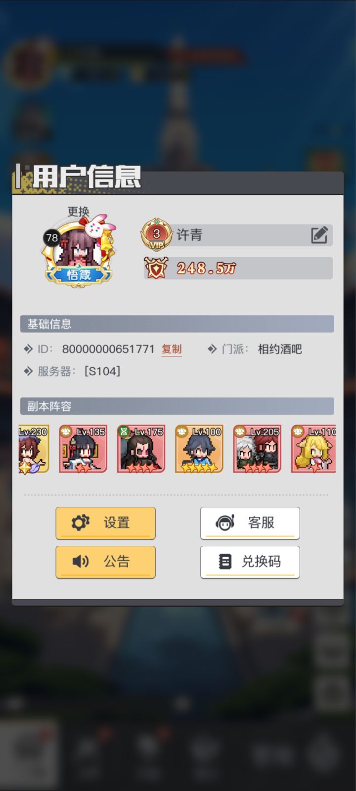 #三千幻世复序攻略征集第1期 这个区也是第十天了,零氪稳在了前十还是挺不错了,这个区人数也一般,接下来说一下零氪的思路。1.开区需要快速通副本,这里建议只上曹青辞一人,拉到最高级2.主c选择和培养思路,首先零氪的资源不多,想要拉到十星就需要精打细算。首先优先神话升十星肯定是比传说更优的。零氪都推荐洛兰,升十星需要五只本体,洛兰能白嫖两只(新人七天/千抽),加上英魂殿,如果不是星期一开的区都能