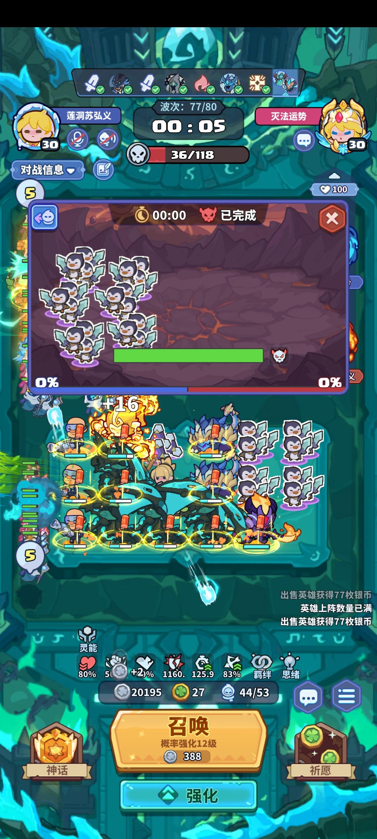 更新日期 24.9.5 by乔不工 感谢萧尹、meat、陈词的数据支持! 第一部分,战局内 1,紫卡流 先介绍“meat”的主线紫卡流。 注意,此流派仅限使用于少数玩家,一般玩家不建议尝试,仅作为借鉴。 开局卡50任务,放领主 一边提升领主等级,一边祈愿紫色英雄 30波前除了召唤白卡合神话外,不耗费银币 30波后,花费银币全力凑紫色英雄并强化紫色英雄等级(稀有英雄等级) 场内至少一组以上的雪鸮、一