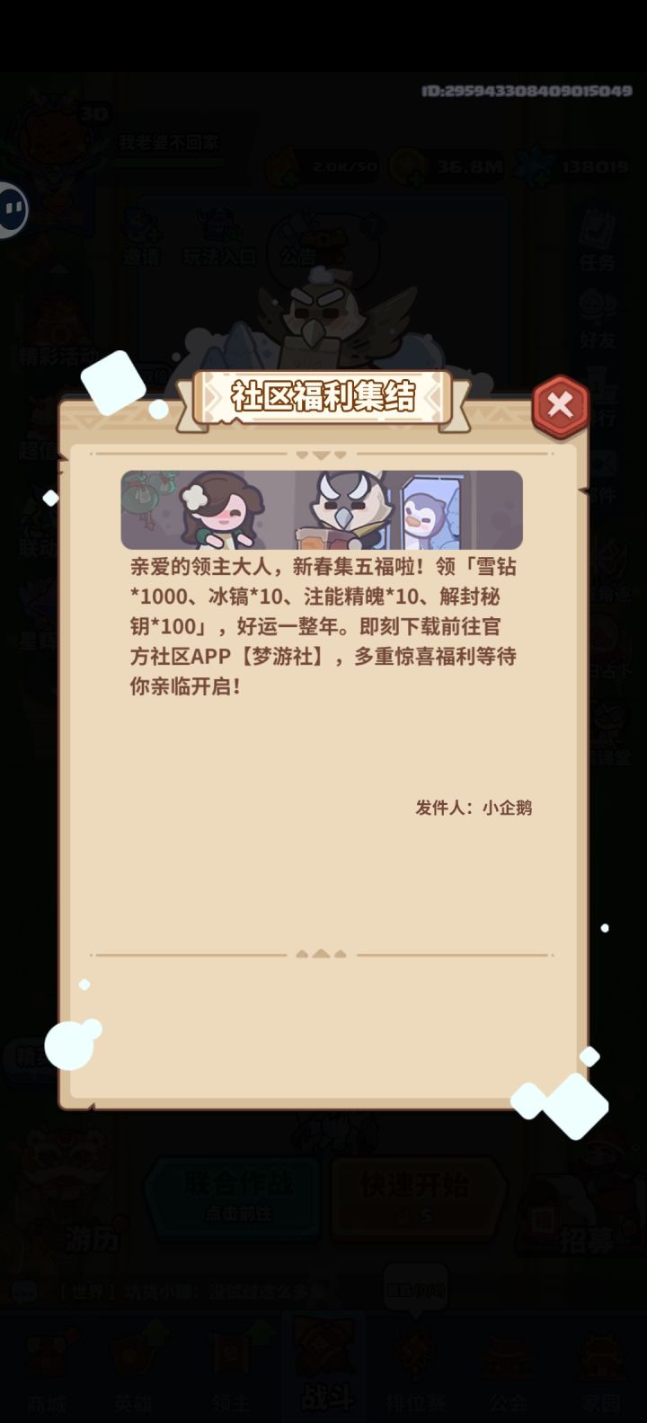 不知不觉玩这个游戏已经3个多月了,回想当初刚玩这个游戏的时候,到处找攻略都找不到,只能去网上找主播,一些不靠谱的小主播又为了完成下载量说一些坑蒙拐骗的内容,导致我走了很多弯路。在这里,我想通过我常年玩游戏的理解,真真正正的给各位朋友们一些起号的建议:①新手0氪推图阶段。我先说前面推图3-5之前,通过做任务和领兑换码获得的雪钻买一只龙和一只鳄鱼,天使后面可以通过钥匙免费抽出来,这样省3000雪钻。