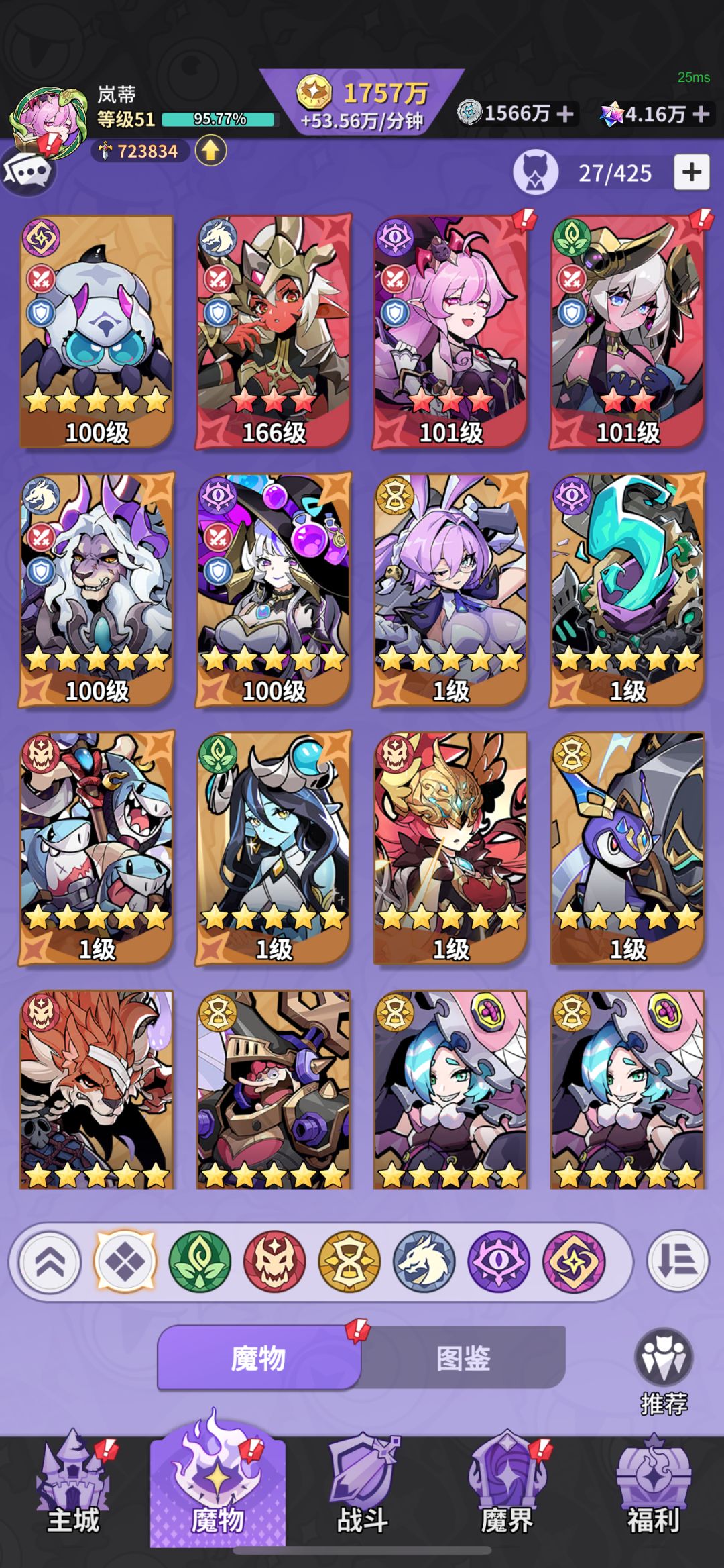 邀请码:GFPFJJSW3F3IH4(咱们一起交流玩)拿十抽五星 一、前期资源获取与利用 1. 升级资源:前期升级所需的经验和银币较为短缺。对于非付费或小额付费玩家而言,可以适当购买一些,否则容易卡关。当缺少资源时点击魔物升级,会弹出 2.5 折的购买选项,且越买折扣越大。 2. 钻石花费: - 大富翁:骰子要买满,这是获取资源的重要途径之一。 - 紫色进阶石:在有银币或者折扣较大(3 - 4