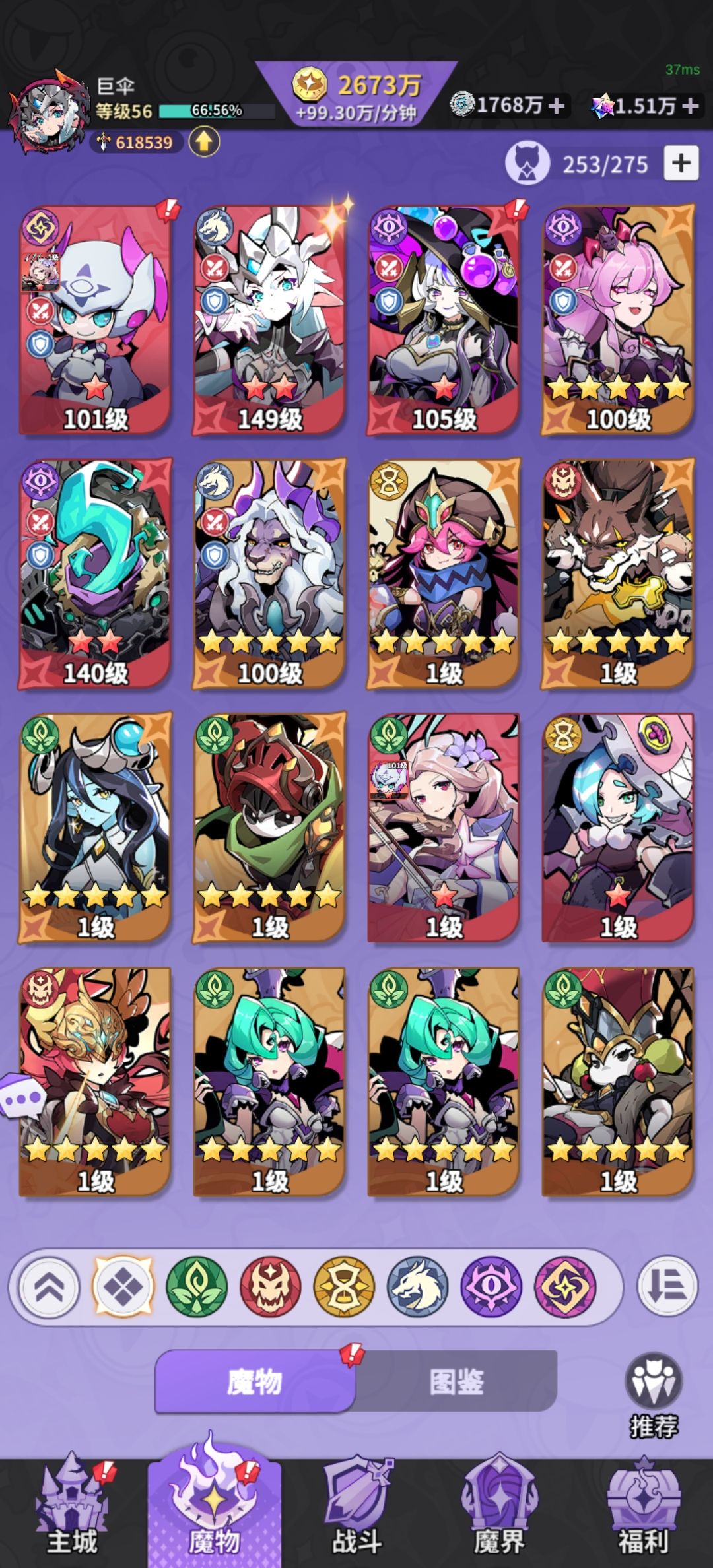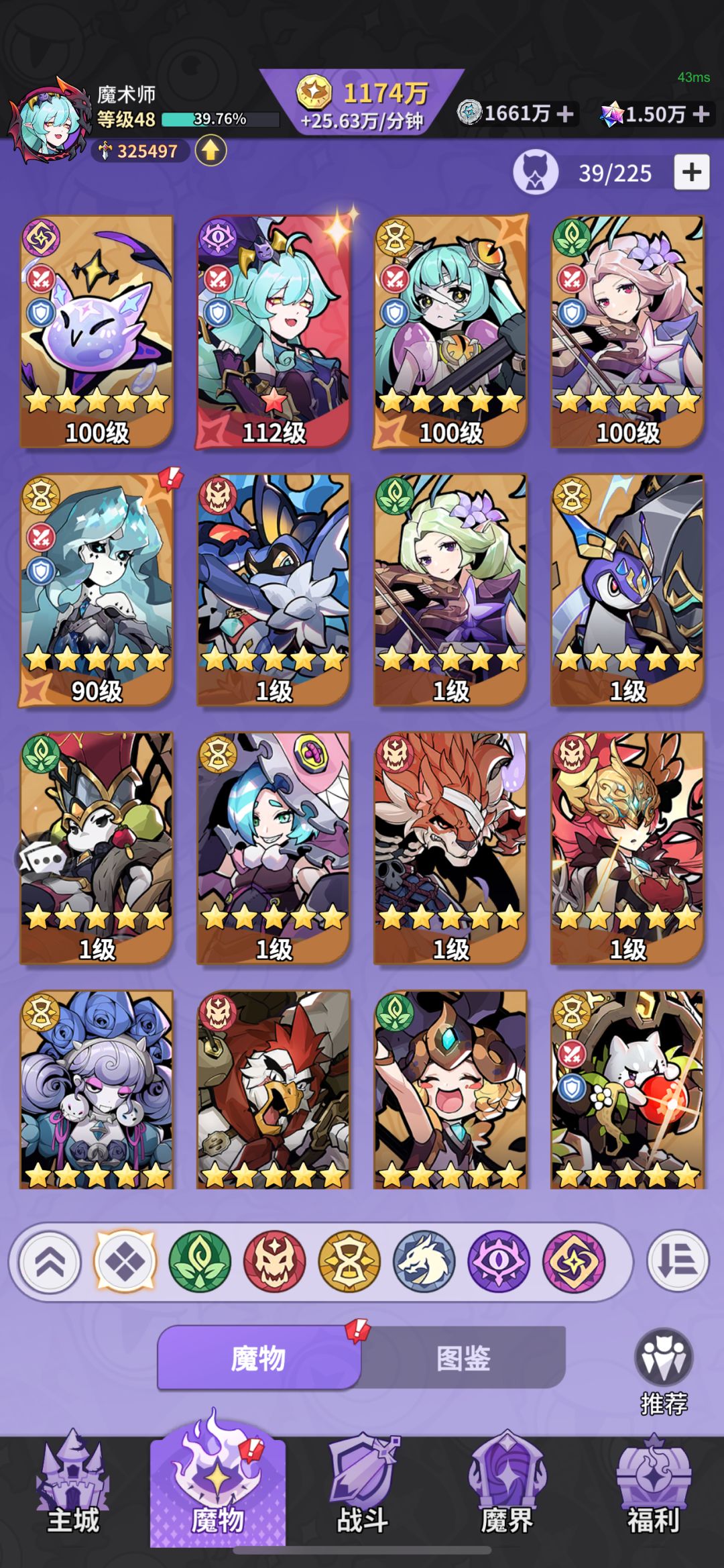 首先这个游戏爆率一般100到200左右,才会有一到两个魔王种 像这个游戏里的除了魔王种,其他的都是狗粮 如果兄弟们有冲的话,还是最好搞一个那个魔王令特权,快速战斗买满可以试着争取一下征服之旅前两张前十通关,有奖励 目前兄弟们前期按照自己抽到的魔王种来进行配队,不过最好是按照前排龙女 狮子 后排莉莉丝 签到第二天送的辅助 还有一个枪皇,之后的阵容就慢慢补龙渊把三色当作狗粮就行了 以上仅仅是个人经验,