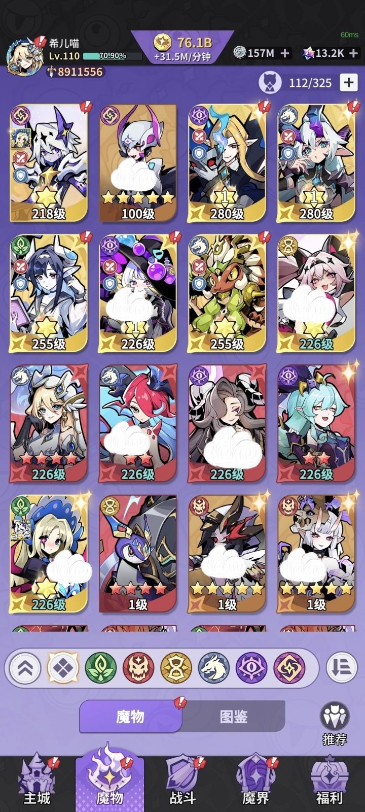 一,主页 1,魔魂 不要用钻石买,很亏。大佬请无视。2,王座(特殊)前期为三个小时一次,全员22级之后为1.5个小时一次。后期建议两个魔王均升,成熟体之后可以开另一个魔王。建议同时30级,同时35级。38级之后可以升到280级,两个魔王可以充当两个十一星,减少升级到12星的时间。这边特别标注,225级之前,每过一关经济关卡加7个加20经验。225~249级是加45。250级到274级是加