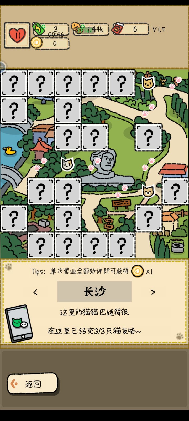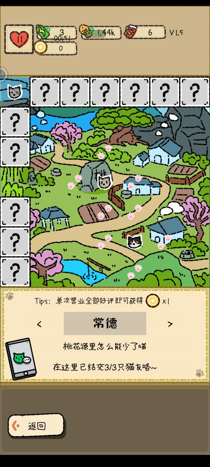 🎮玩法轻度模拟经营类游戏,喜欢小猫的话不要错过~整个店是小猫送的,设定很新奇,带有一点魔幻色彩。操作并不复杂,点击即可。客人全都是点已解锁的菜单,大部分是食材两两一起制作,手速够快完全能应付得来,难度并不高。采用天,也就是关卡制来进行游戏。一天之后可以进行原材料的采购、调整食材摆放位置、新菜研发等操作,也会有一定随机事件,比如高价收某种食材,可以小赚一笔。⚖️养成纯休闲类游戏,养成即对整个