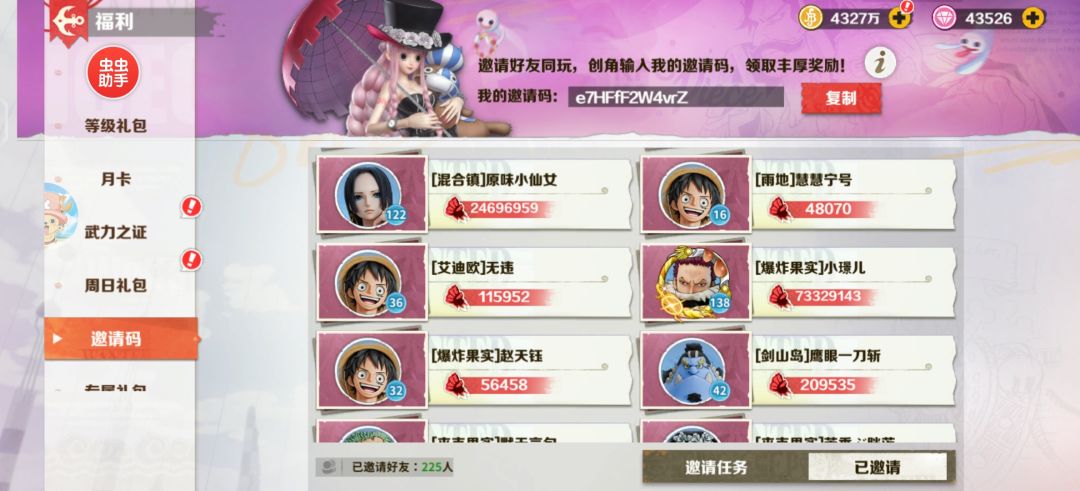 邀请码 ShGprkwrJx68 30级前右上角福利大厅内输入送十连 领500钻石,50 ssr碎片,10高抽 vip666、vip777、vip888、vip999 svip666、svip777、svip888、svip999 zb6666、zb7777、zb8888、zb9999 dy666、dy777、dy888、dy999 HZ666、HZ777、HZ888、HZ999 fl666、fl