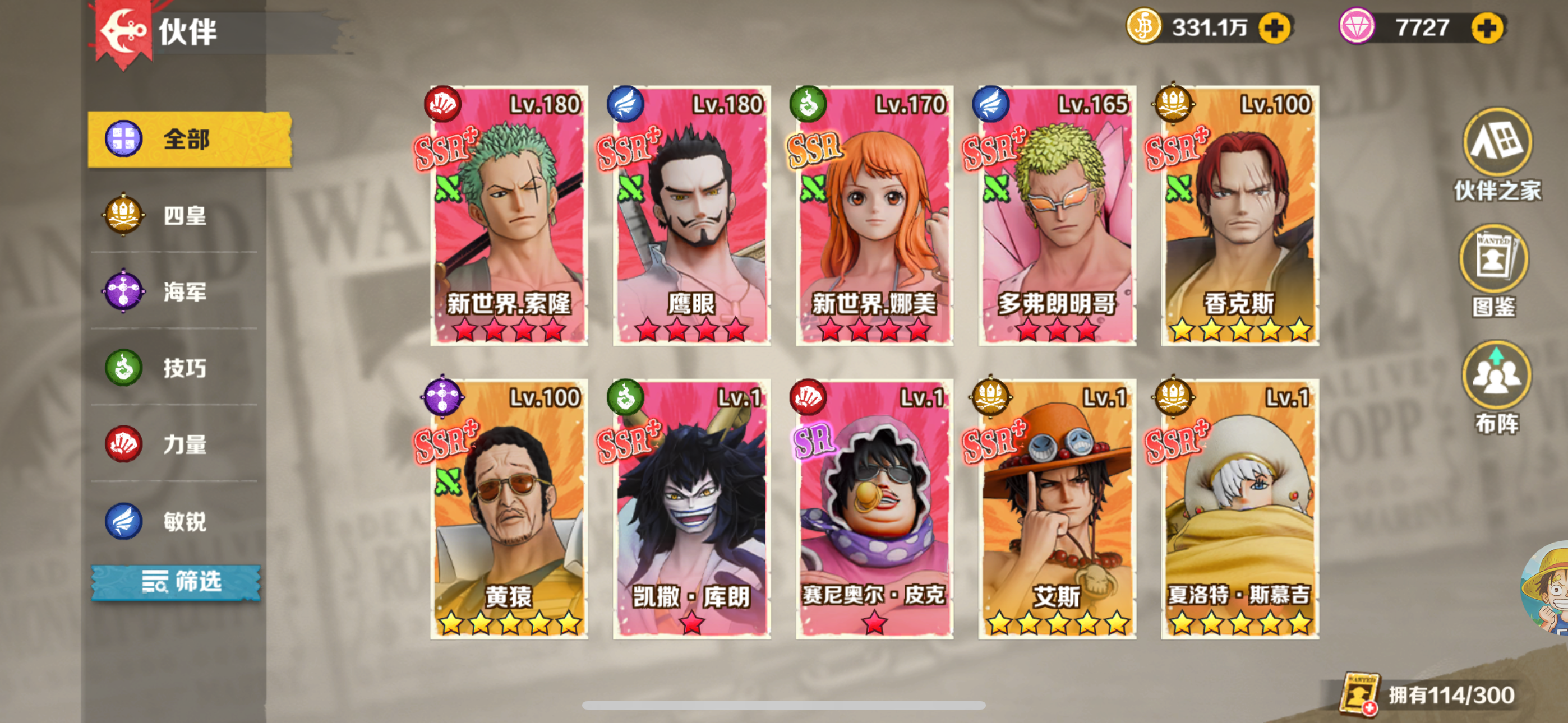 号被老板收购了 留个纪念止步2600万 一个多月的区 (1000+速度)13星索隆 鹰眼 12星女帝(后天也可13星 狗粮够了差点瓶子)双霸气都已毕业 印章技能都已毕业 都按上阵英雄量身打造 本区第三 跨服竞技场第七 3000万左右氪金海皇阵容随便吊打比心[表情_比心]