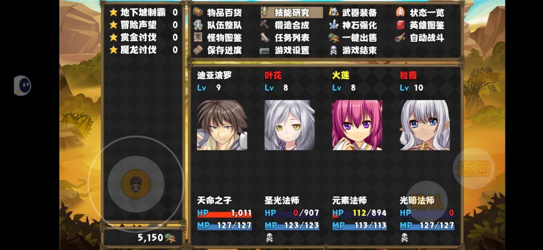 虚拟按键:双指点击屏幕打开菜单,点击游戏设置,点击打开或关闭虚拟按键 战斗逃跑:战斗中按返或者双指点击屏幕可进入返回界面,然后选择逃跑 召唤器:用完卖掉或者放仓库,再次使用会重置角色。 队伍换人:打开虚拟键盘,选择整队后键盘往右拉 技能:后续召唤加入的队友在技能研究那有个天赋技能需要手动学习。 复活:队友死亡可以通过触碰恢复水晶恢复或者使用帐篷(帐篷在道具店购买) 神石:boss掉落,芭蕉洞小怪