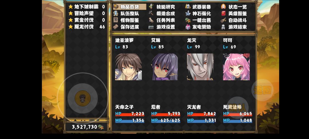 虚拟按键:双指点击屏幕打开菜单,点击游戏设置,点击打开或关闭虚拟按键 战斗逃跑:战斗中按返或者双指点击屏幕可进入返回界面,然后选择逃跑 召唤器:用完卖掉或者放仓库,再次使用会重置角色。 队伍换人:打开虚拟键盘,选择整队后键盘往右拉 技能:后续召唤加入的队友在技能研究那有个天赋技能需要手动学习。 复活:队友死亡可以通过触碰恢复水晶恢复或者使用帐篷(帐篷在道具店购买) 神石:boss掉落,芭蕉洞小怪