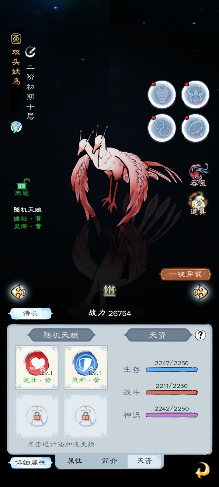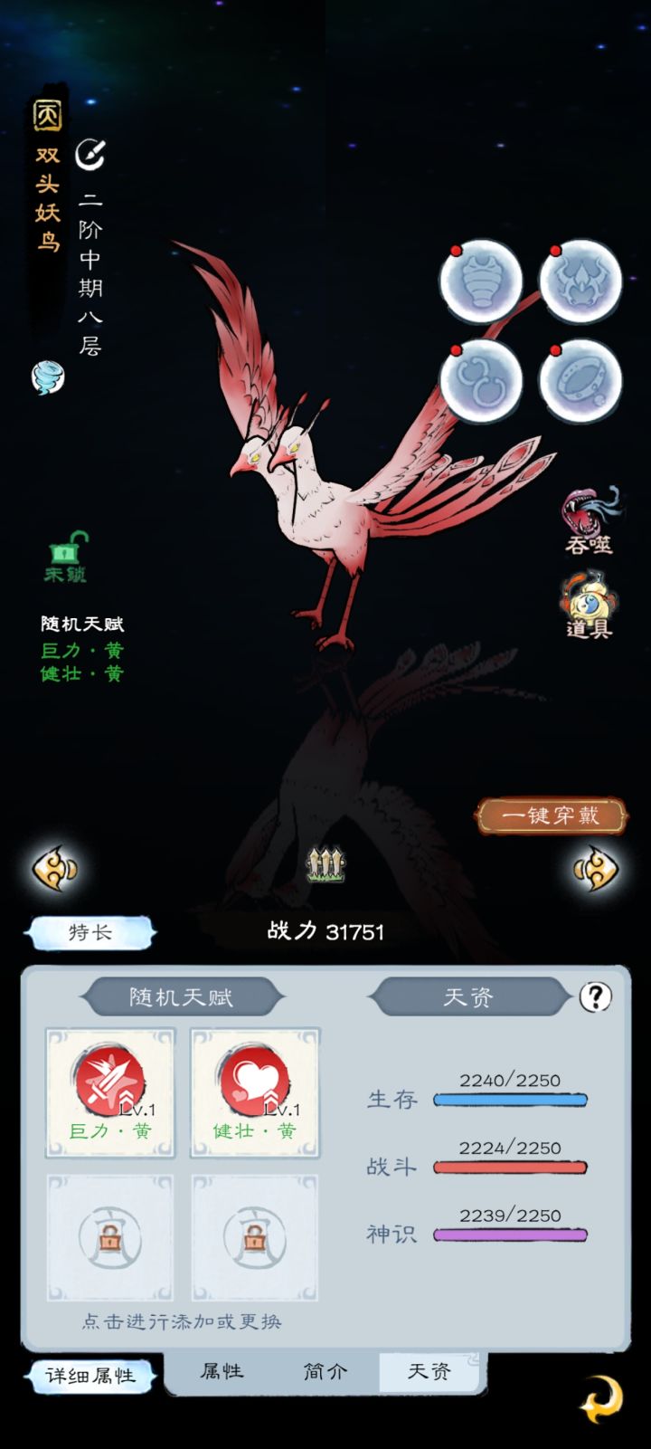 在此帖之前已经生了两个多月了,现在上面这两是资质最高的,目的在于记录什么时候能生出三完美九头鸟,任重道远,大家看看就好#山海仙路