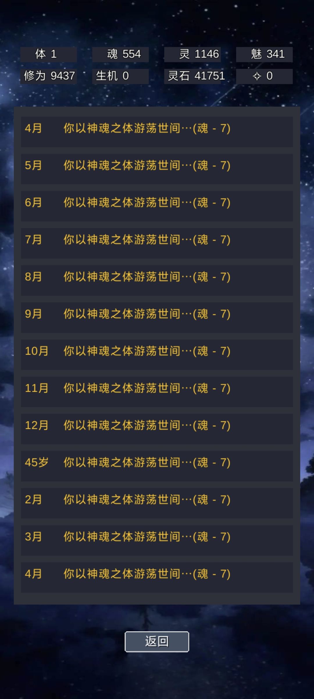 属性点的价值:1体质>1悟性=1幸运>5功德≥1家境≥智力,游戏内,一点体质大于五点功德,因为一点体质可以带来8功德点左右的收益 首次投胎悟性≥6 体质≥3家境≥3,幸运≥3,剩余属性点随意分配。 发展路线:体质,当幸运<5时,不可低于5,不然随时暴毙,75岁后,尽量不要低于6点体质,不然就会不治而亡。 悟性,达到9点后可以即可触发悟性事件加5功德与6魂魄,13点可触发加10魂魄。 体质:直接选,