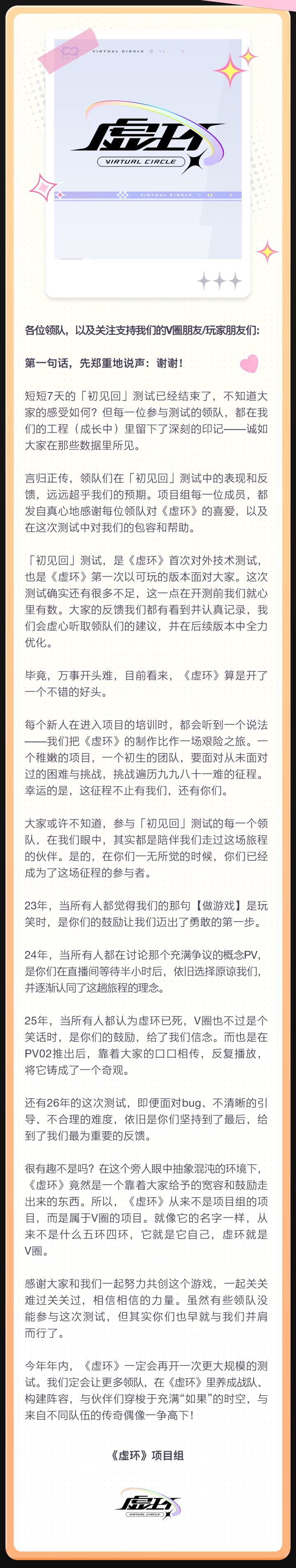 《虚环》项目组发布了新的公告,明确表示今年年内一定会再开一次更大规模的测试。相比之前的小范围测试,这次的目标是让更多领队都能参与进来,不再只是少数人的体验。按照官方给出的描述,玩家可以在游戏里养成自己的战队,自由构建阵容,然后跟伙伴们一起穿梭于一个充满如果的时空。不同队伍的传奇偶像也会登场,等着你来跟她们一较高下。《虚环》这款游戏从公布之初就挺特别的。它把虚拟偶像和策略养成结合在一起,角色大多